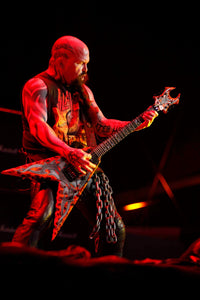 Thrash Metal, fast, aggressive, shredding guitars, double-bass drum and insane percussion, and controversial topics such as warfare, religion, and murder -- these are some of the elements that define Slayer’s musical style. Some of the controversial topics surrounding the band include Nazism and racism, Satanism and anti-Christianity, and terrorism. They have stated that they do not condone Nazism, nor are they Satanic, and claim only that they find interest in these topics, and that “we are all on this planet to learn and experience.” Their song “Jihad” tells an imagined story behind the 9-11 terrorist attack on the World Trade Center, from the perspective of one of the terrorists. It received very mixed critical reviews due to the subject matter. However, the band’s idea was simply to present an alternative perspective without being sympathetic to the cause. They had intended to create controversy, but didn’t anticipate the actual result, which was having their album recalled in some countries, and having their songs censored when performed on live television. They have stated that their music is parody, yet it seems to be so satirical that people take it seriously and literally. Regardless, Slayer has two Grammys under its belt, with 11 studio albums, a box set, two live albums, and six music videos.