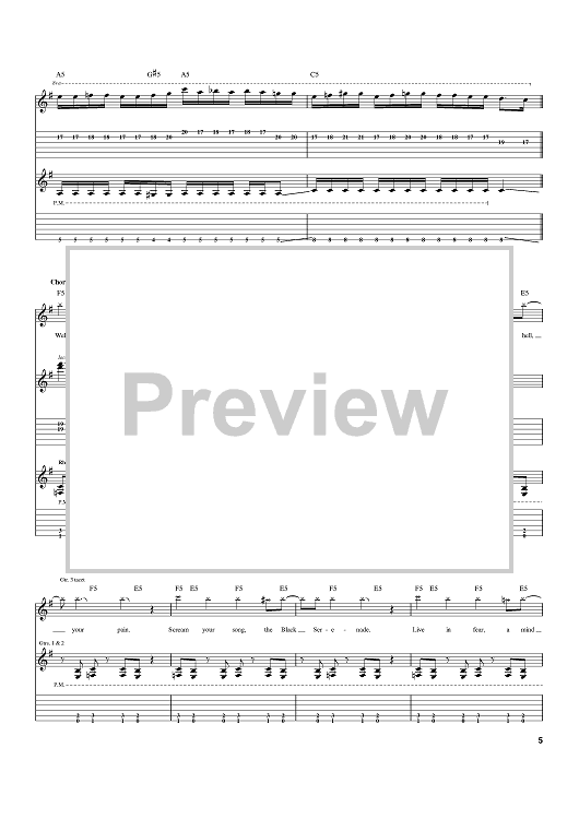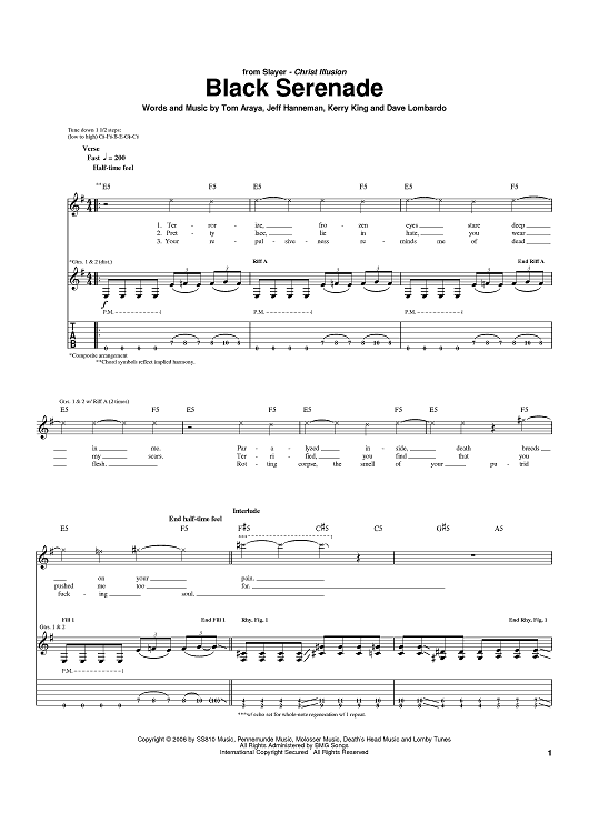 Digital Sheet Music for Black Serenade by Tom Araya, Jeff Hanneman, Kerry King, Dave Lombardo, Slayer scored for Guitar Tab; id:397553