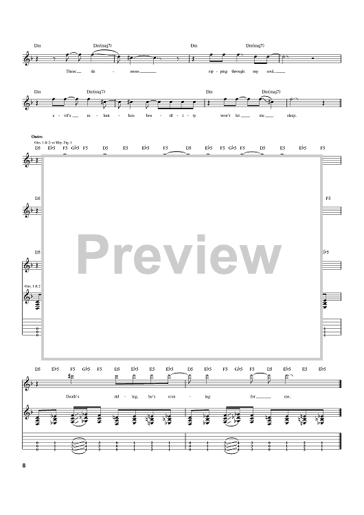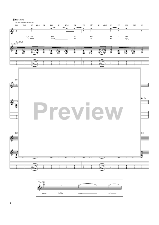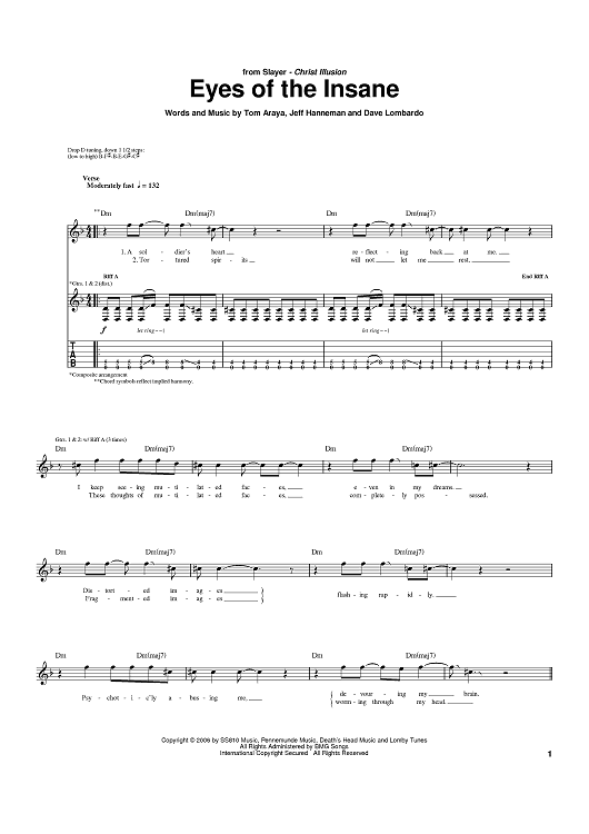 Digital Sheet Music for Eyes Of The Insane by Tom Araya, Jeff Hanneman, Dave Lombardo, Slayer scored for Guitar Tab; id:397562