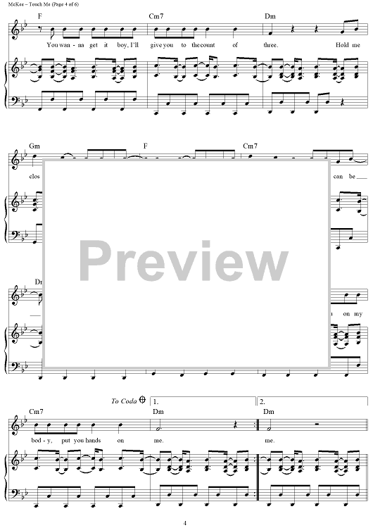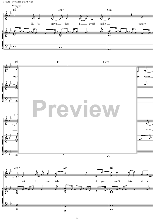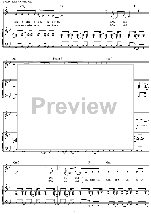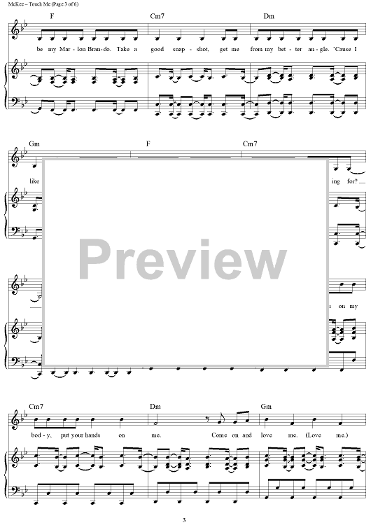 Digital Sheet Music for Touch Me by Katharine McPhee, Ryan Tedder, Brent Kutzle, Noel Zancanella, Bonnie McKee scored for Piano/Vocal/Chords; id:430347