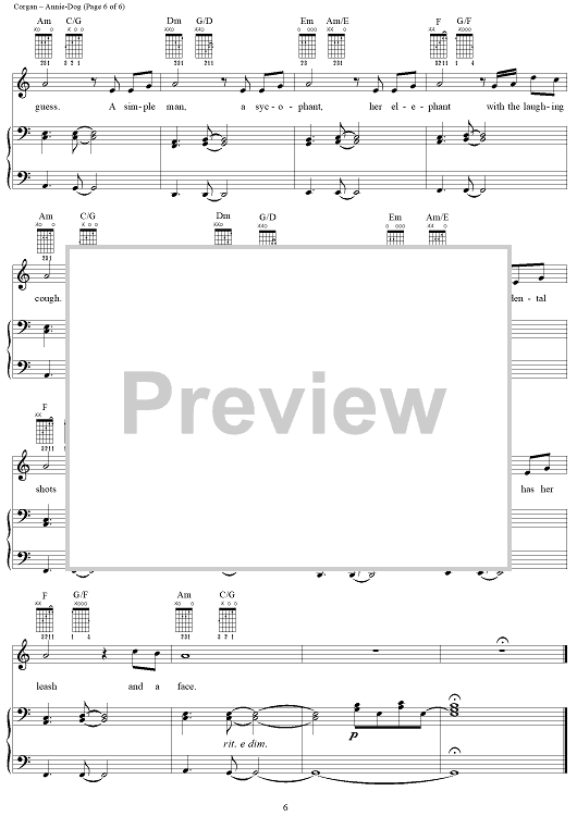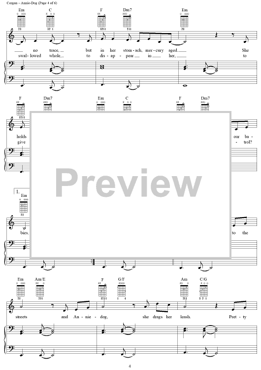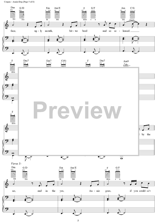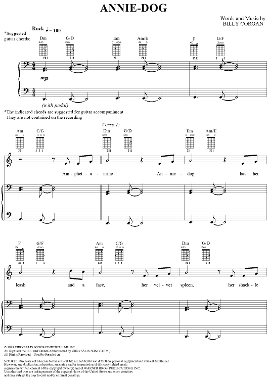 Digital Sheet Music for Annie-Dog by Billy Corgan, Smashing Pumpkins scored for Piano/Vocal/Chords; id:113197
