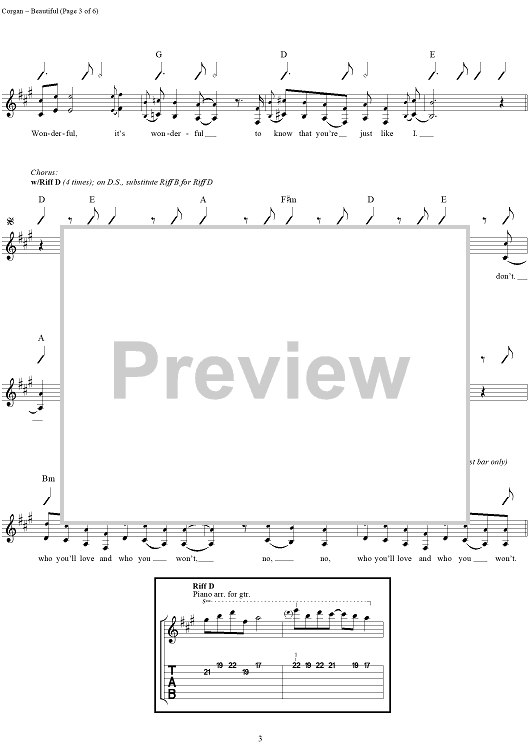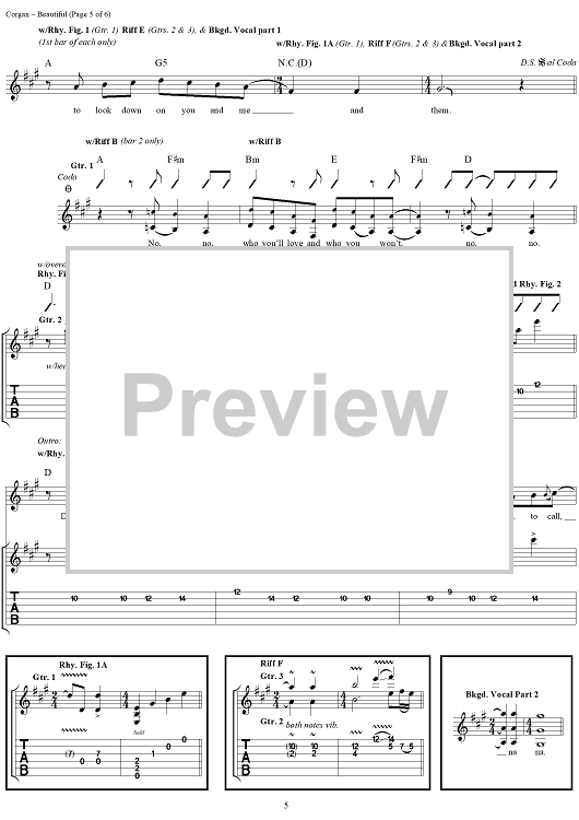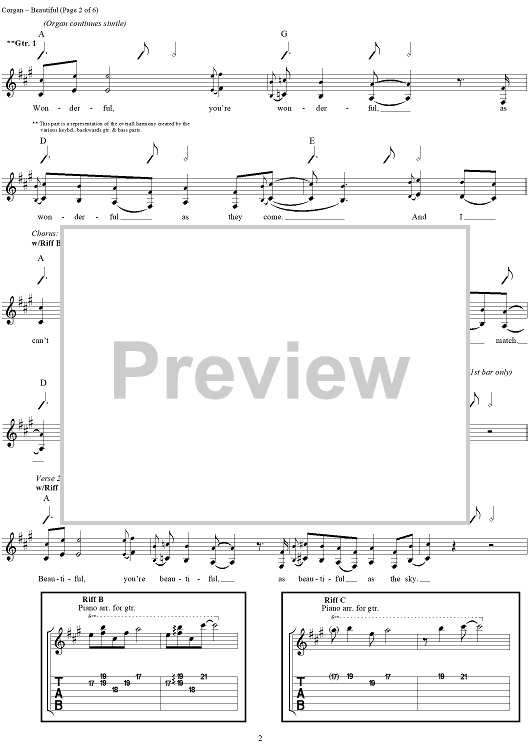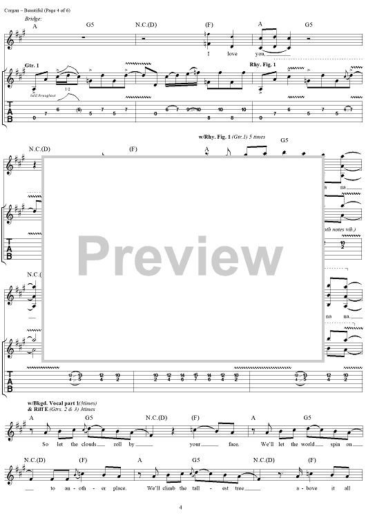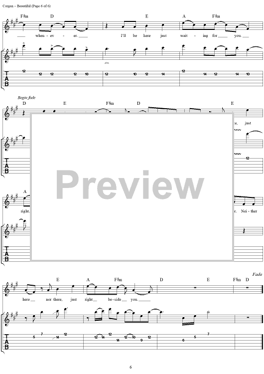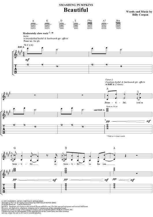 Digital Sheet Music for Beautiful by Billy Corgan, Smashing Pumpkins scored for Guitar Tab/Vocal; id:111644