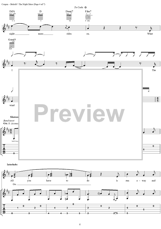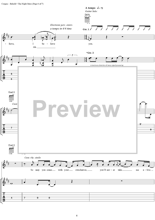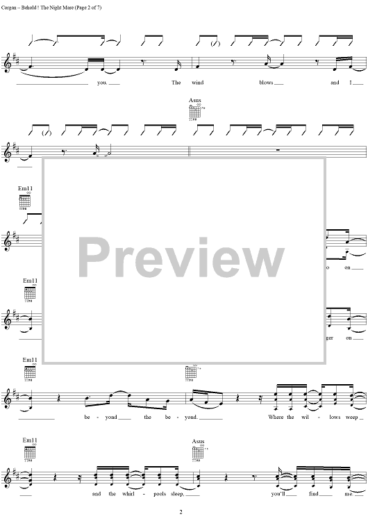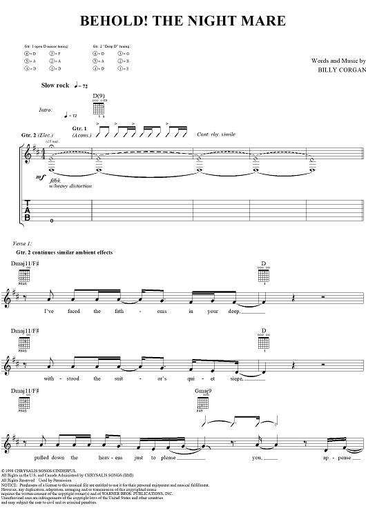 Digital Sheet Music for Behold! The Night Mare by Billy Corgan, Smashing Pumpkins scored for Guitar Tab/Vocal; id:272286