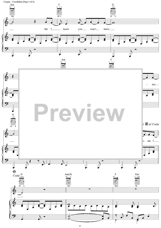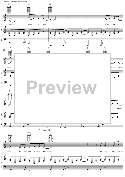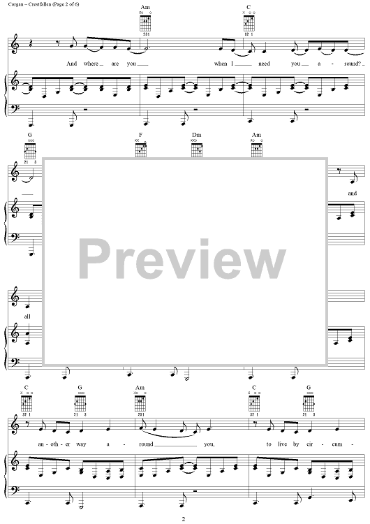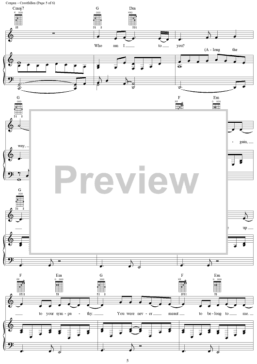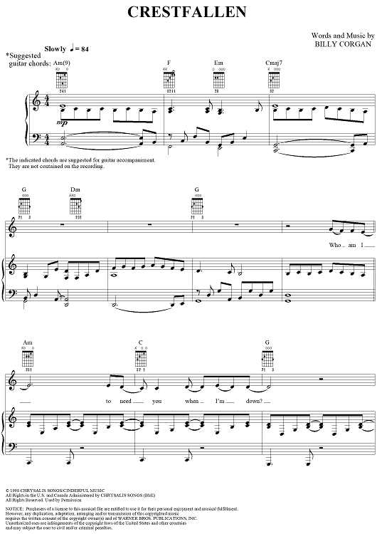 Digital Sheet Music for Crestfallen by Billy Corgan, Smashing Pumpkins scored for Piano/Vocal/Chords; id:241640