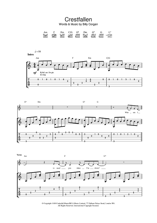 Digital Sheet Music for Crestfallen by Smashing Pumpkins scored for Guitar Tab; id:376748