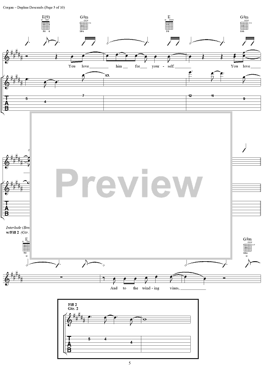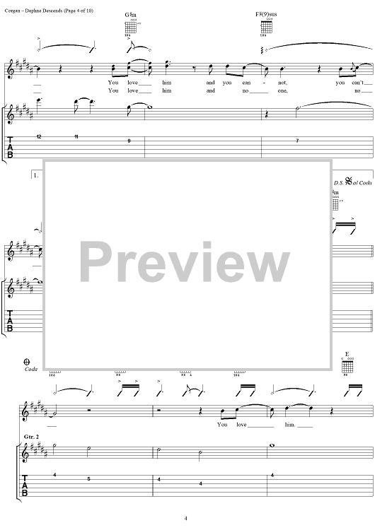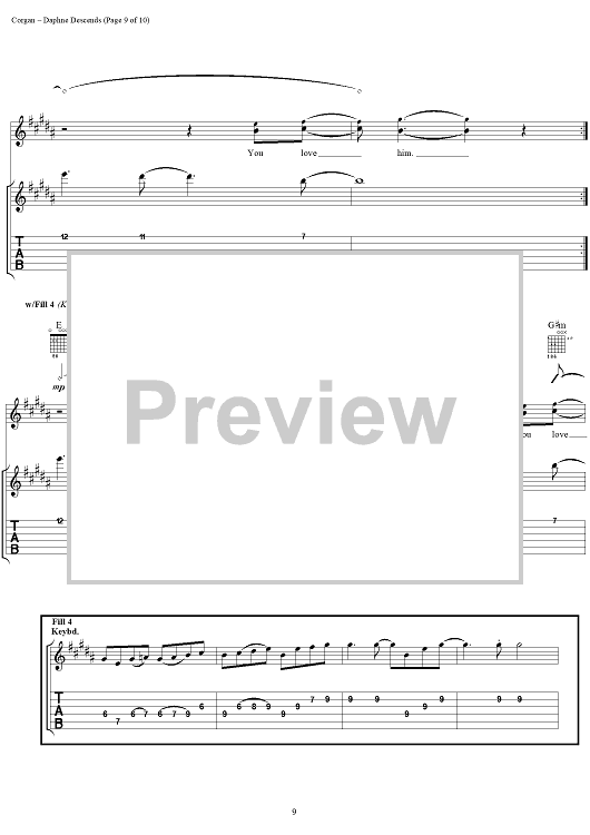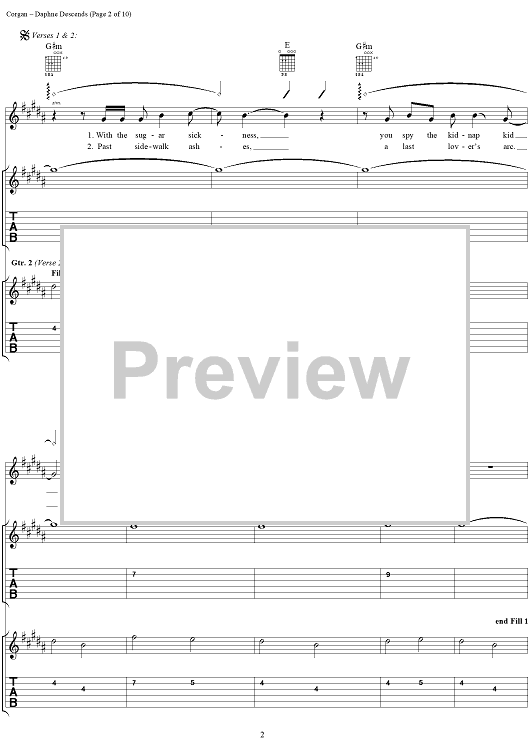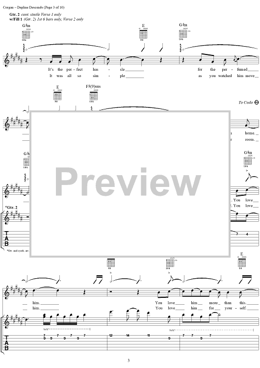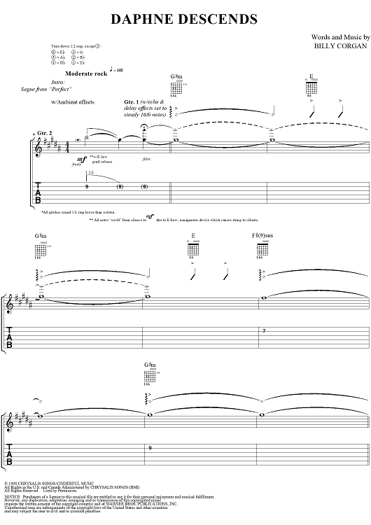 Digital Sheet Music for Daphne Descends by Billy Corgan, Smashing Pumpkins scored for Guitar Tab/Vocal; id:112905
