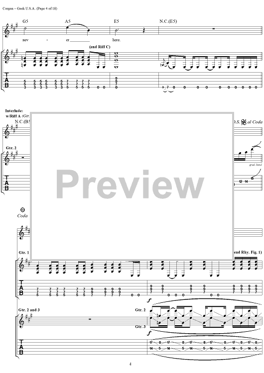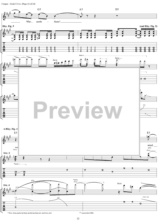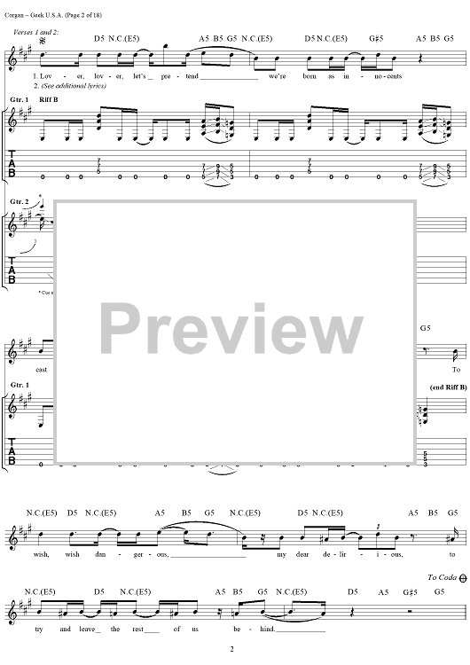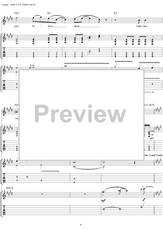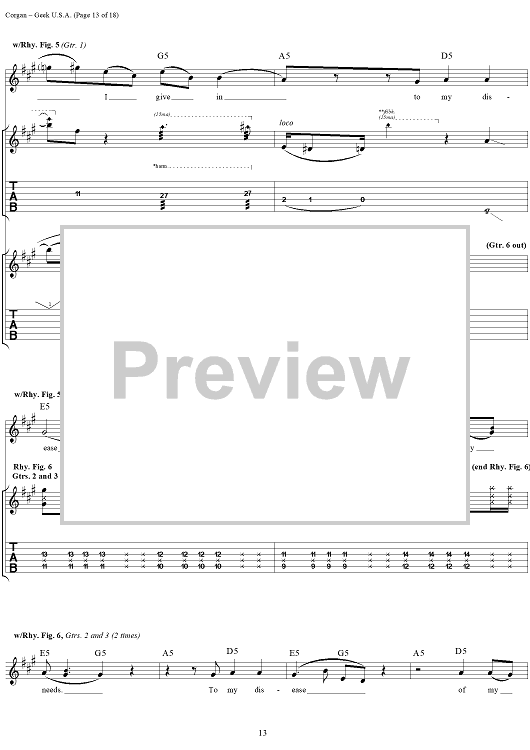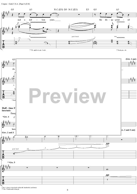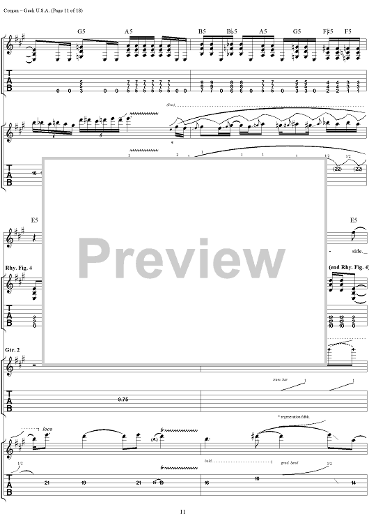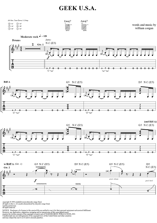 Digital Sheet Music for Geek U.S.A. by Billy Corgan, Smashing Pumpkins scored for Guitar Tab/Vocal; id:272456
