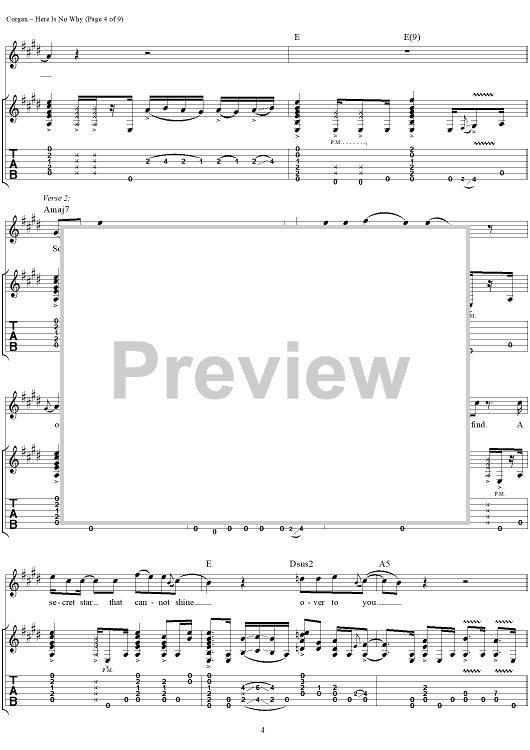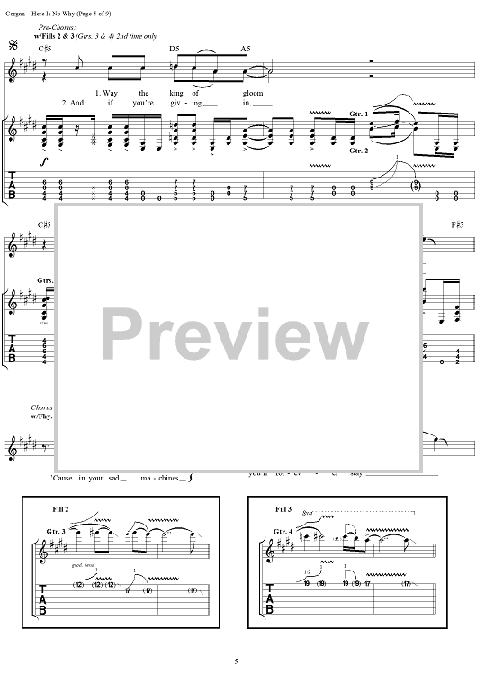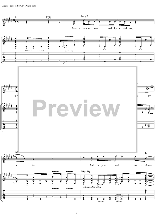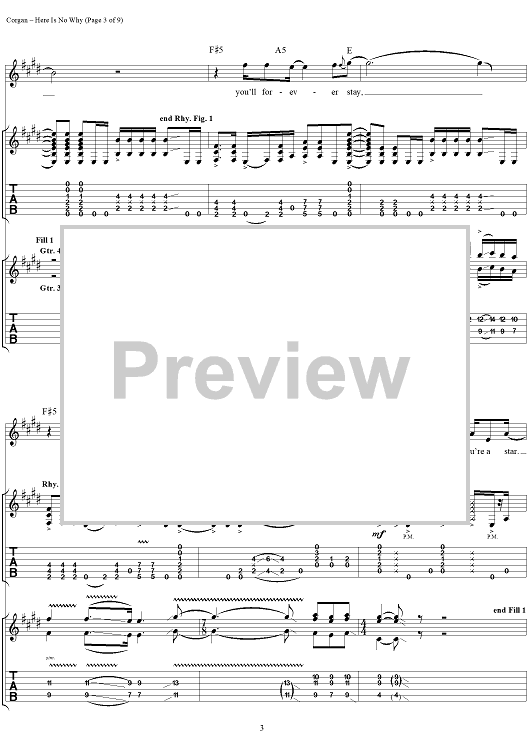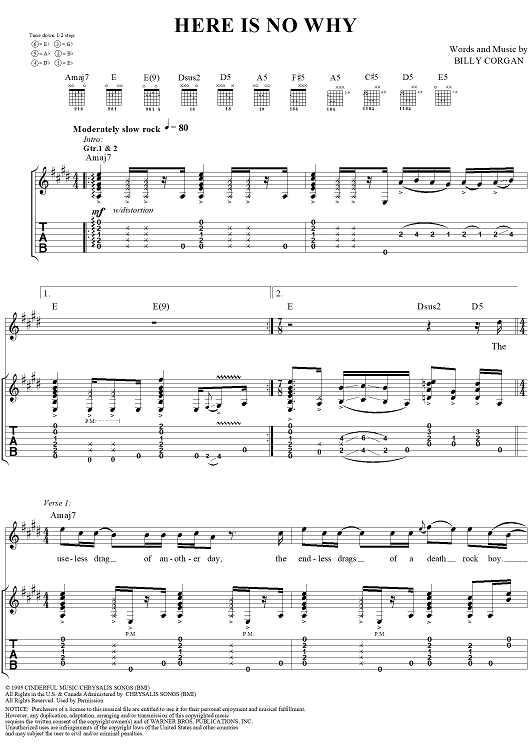 Digital Sheet Music for Here Is No Why by Billy Corgan, Smashing Pumpkins scored for Guitar Tab/Vocal; id:114404