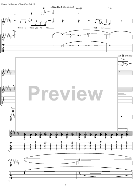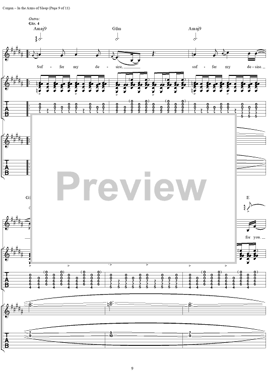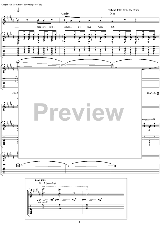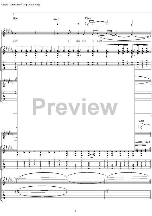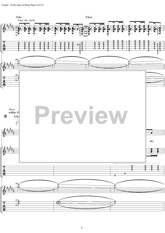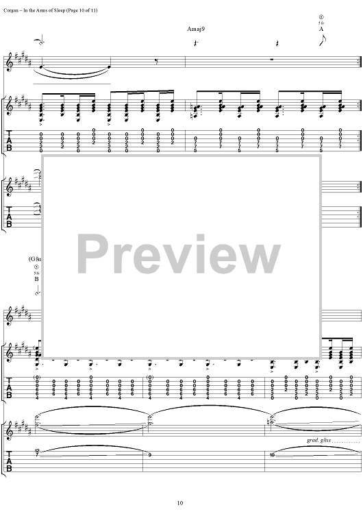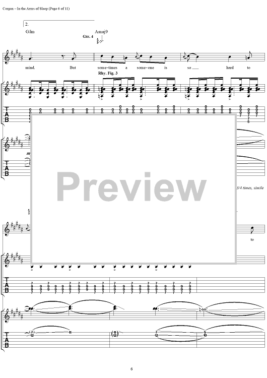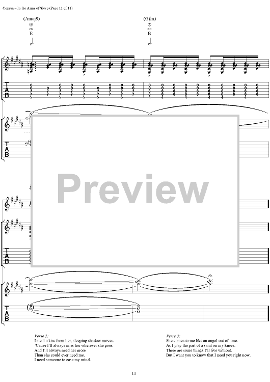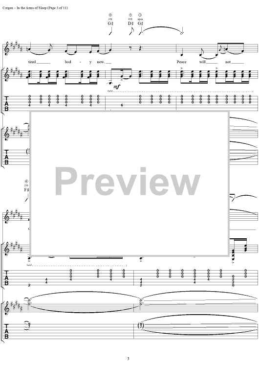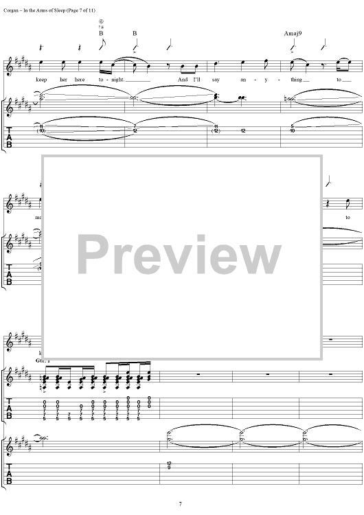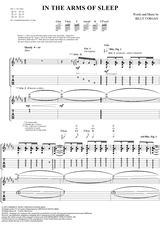 Digital Sheet Music for In the Arms of Sleep by Billy Corgan, Smashing Pumpkins scored for Guitar Tab/Vocal; id:119457