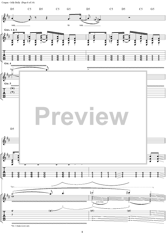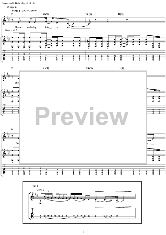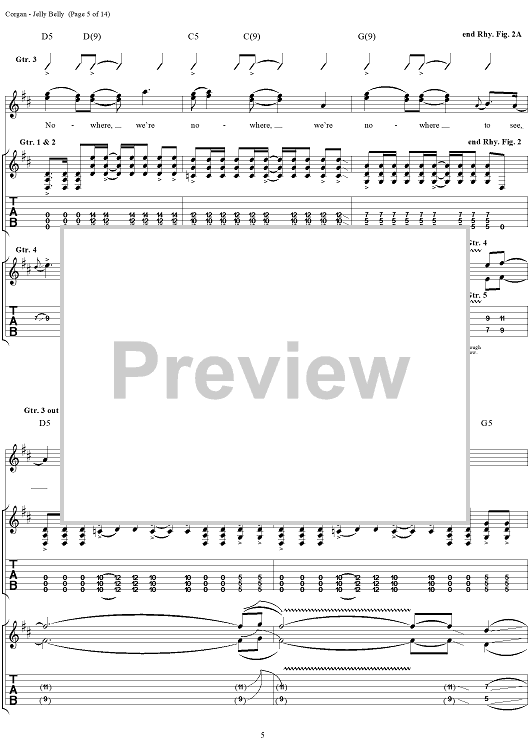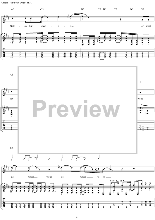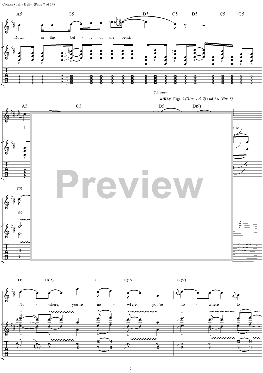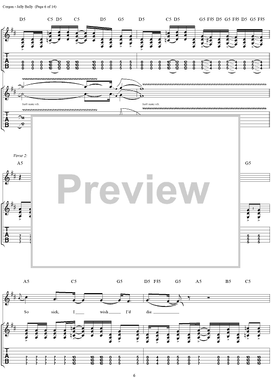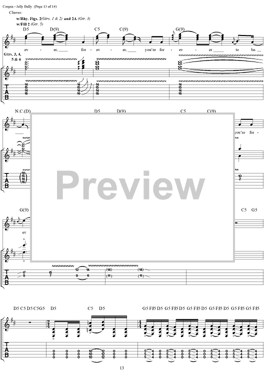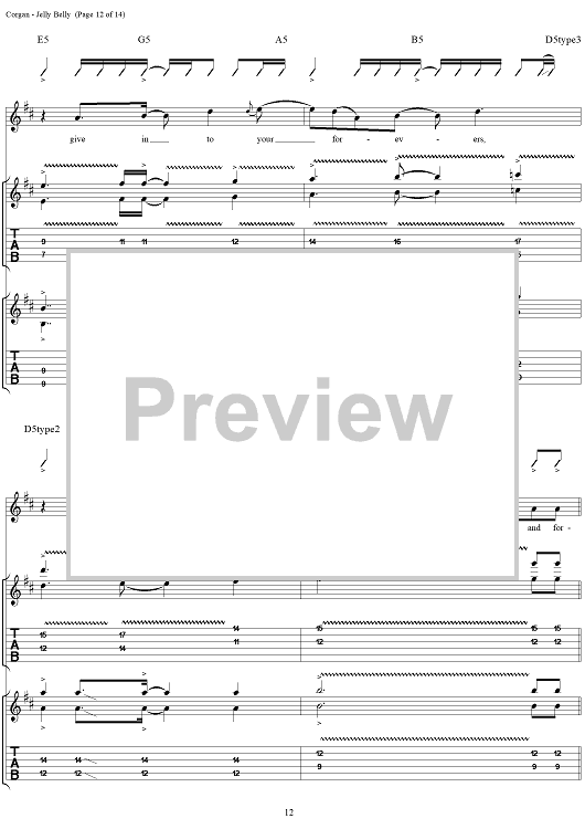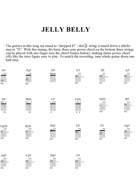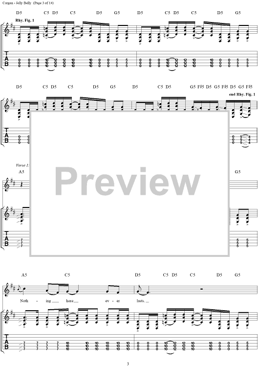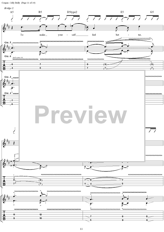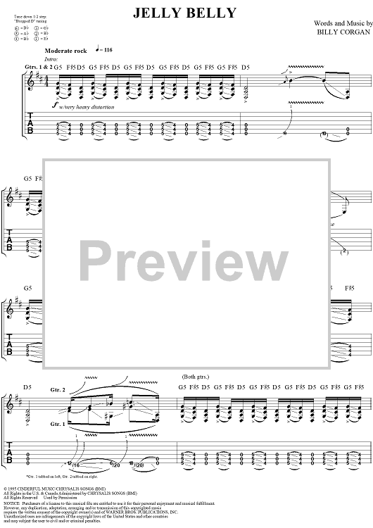 Digital Sheet Music for Jelly Belly by Billy Corgan, Smashing Pumpkins scored for Guitar Tab/Vocal; id:272349