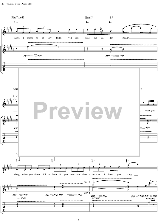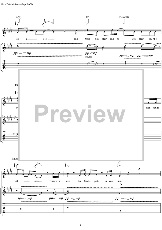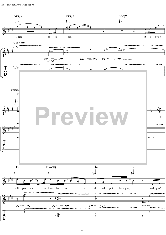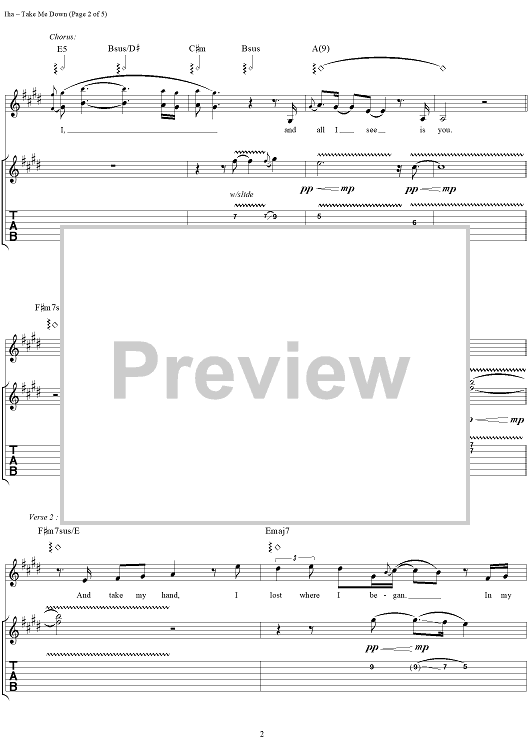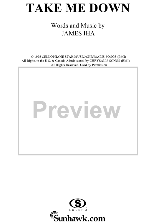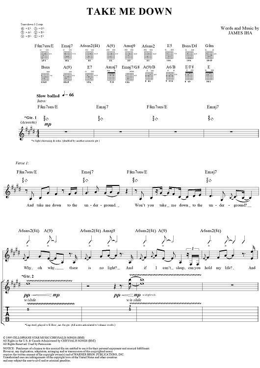 Digital Sheet Music for Take Me Down by James Iha, Smashing Pumpkins scored for Guitar Tab/Vocal; id:116127