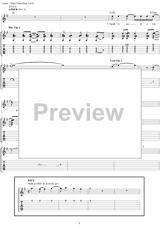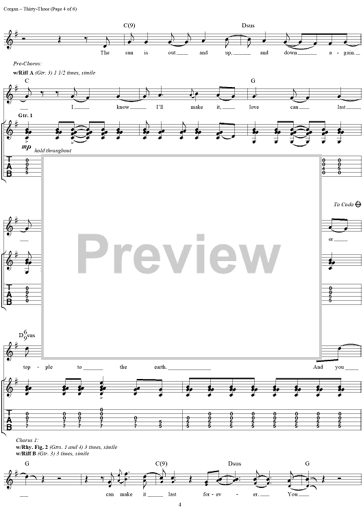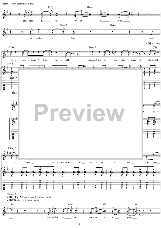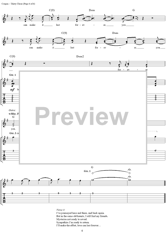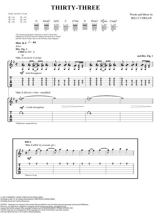 Digital Sheet Music for Thirty-Three by Billy Corgan, Smashing Pumpkins scored for Guitar Tab/Vocal; id:116130