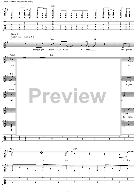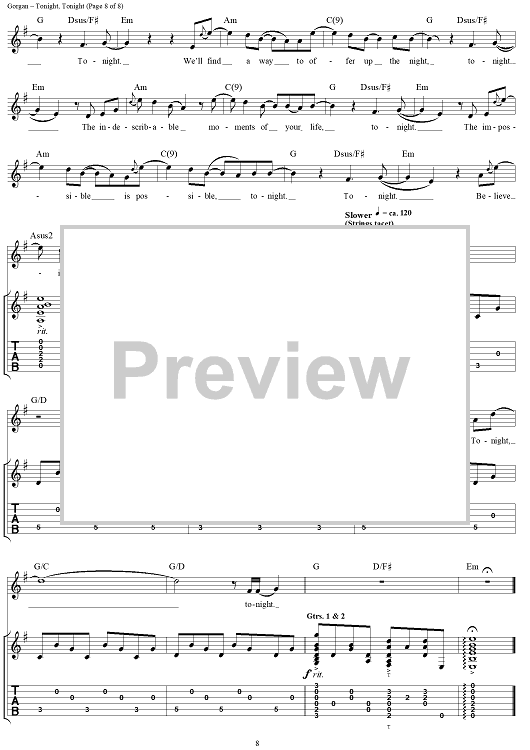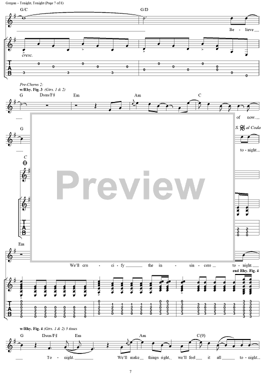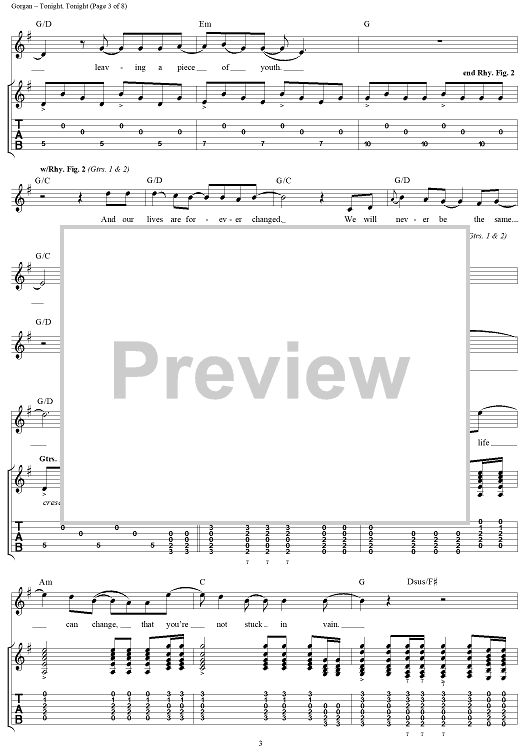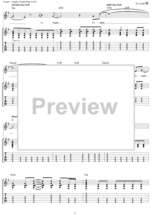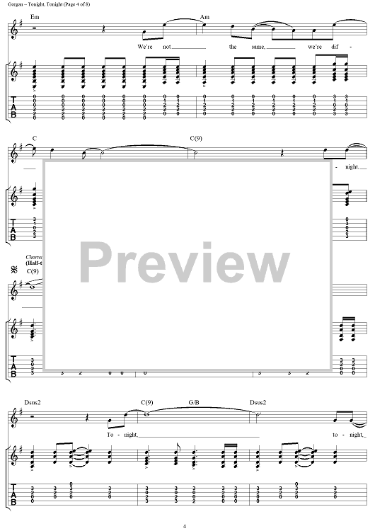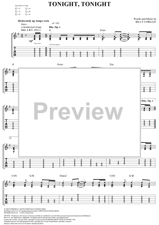 Digital Sheet Music for Tonight, Tonight by Billy Corgan, Smashing Pumpkins scored for Guitar Tab/Vocal; id:272162