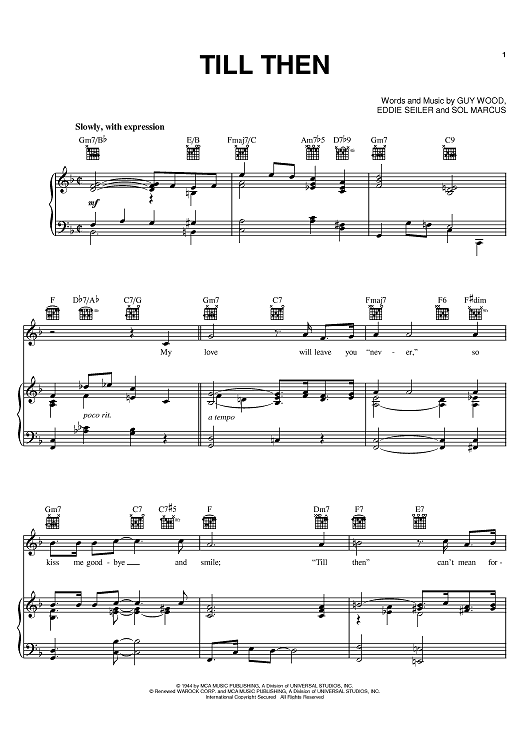 Digital Sheet Music for Till Then by Guy Wood, Sol Marcus, Eddie Seiler, Hank Thompson, Mills Brothers scored for Piano/Vocal/Chords; id:381890