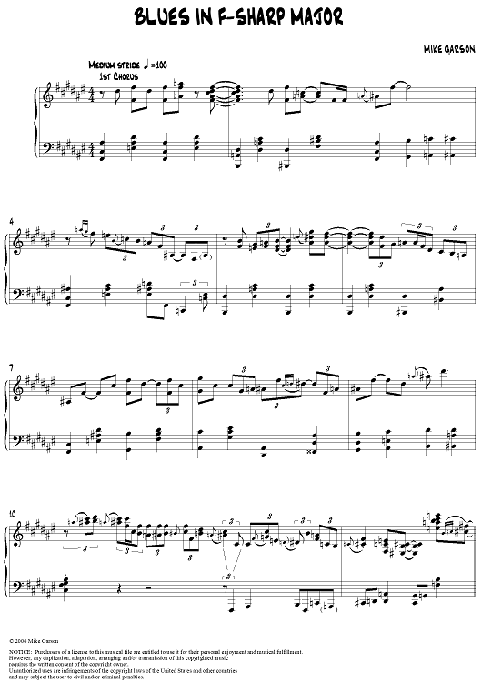 "Blues in F-sharp Major" Sheet Music by Mike Garson