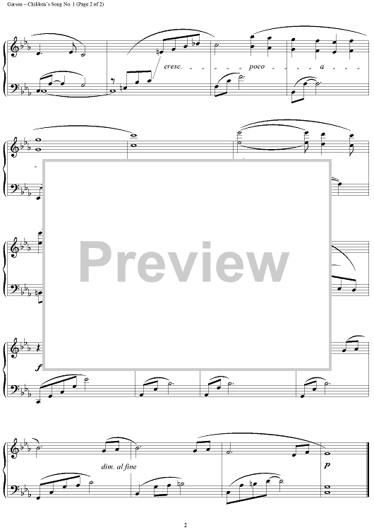 Digital Sheet Music for Children's Song No. 1 by Mike Garson scored for Piano Solo; id:320670