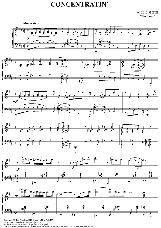 "Concentratin'" Sheet Music by Willie "The Lion" Smith