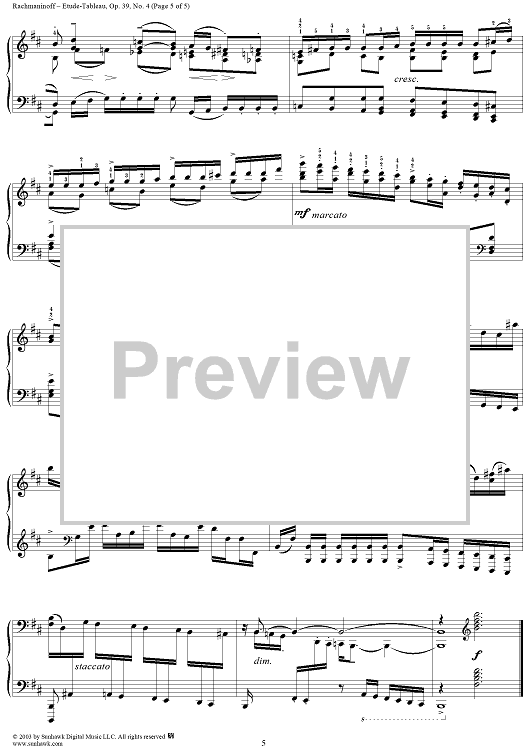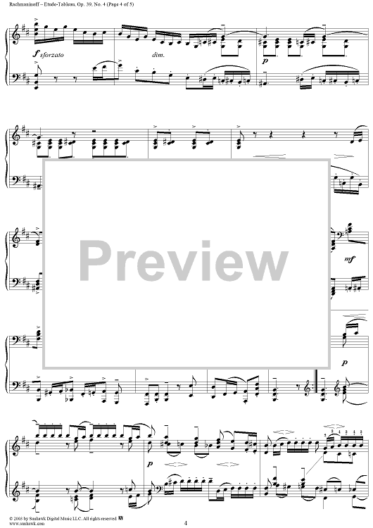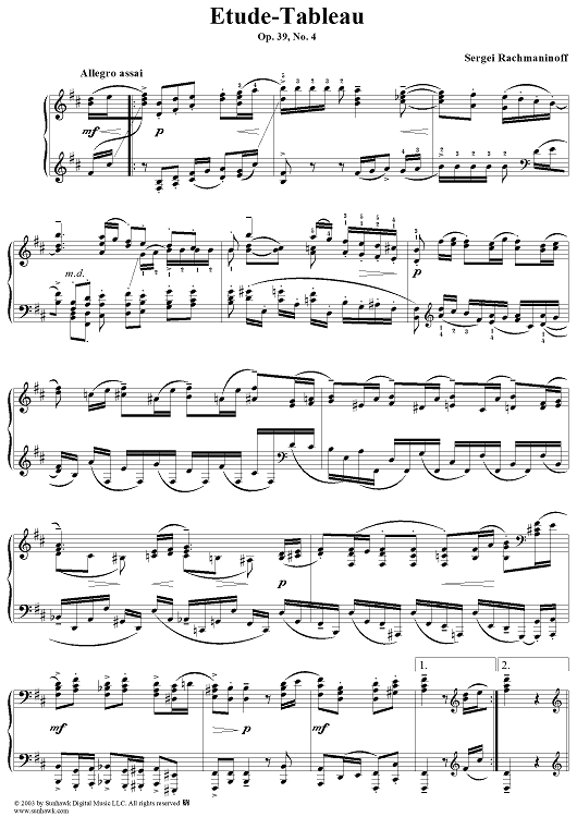 Digital Sheet Music for Etude-Tableau in B Minor, Op. 39, No. 4 by Sergei Rachmaninoff scored for Piano Solo; id:294363