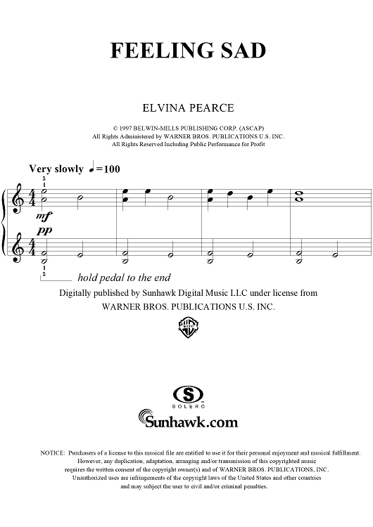 Digital Sheet Music for Feeling Sad by Elvina Pearce scored for Piano Solo; id:285897