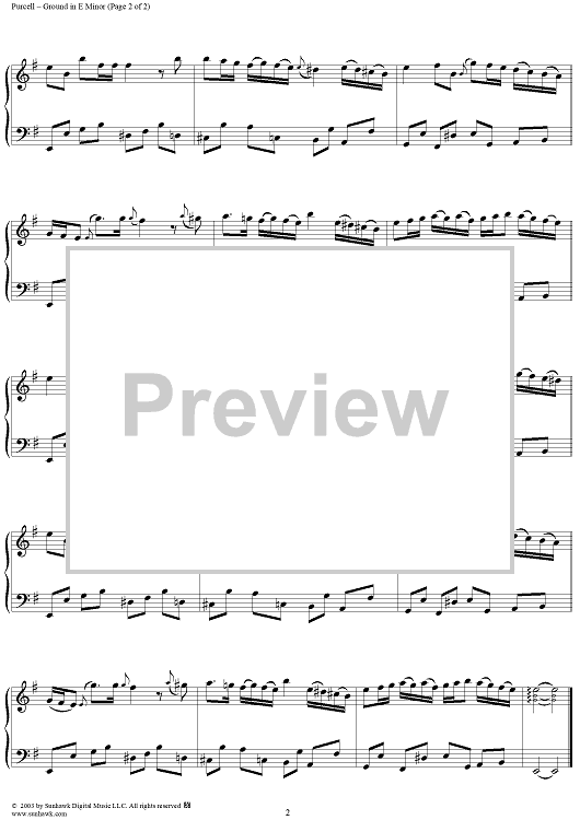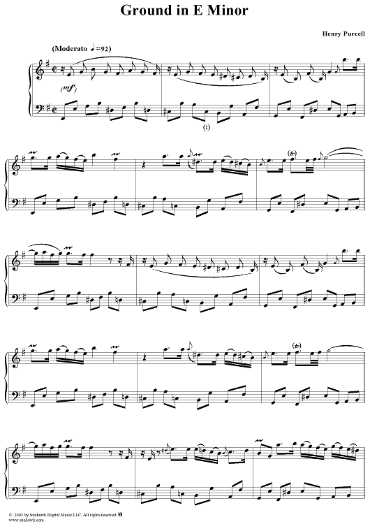 Digital Sheet Music for Ground in E Minor by Henry Purcell scored for Piano Solo; id:294376