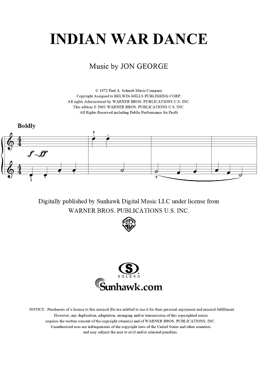 Digital Sheet Music for Indian War Dance by Jon George scored for Piano Solo; id:285917