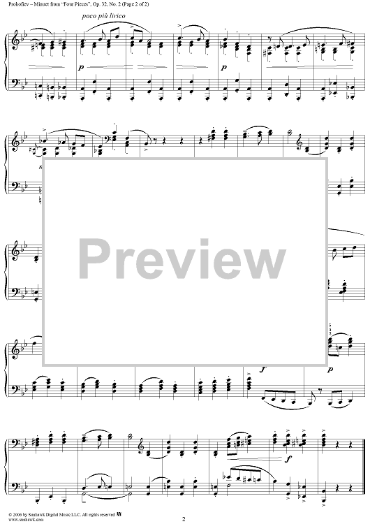 Digital Sheet Music for Minuet, Op. 32, No. 2 by Sergei Prokofiev scored for Piano Solo; id:316575