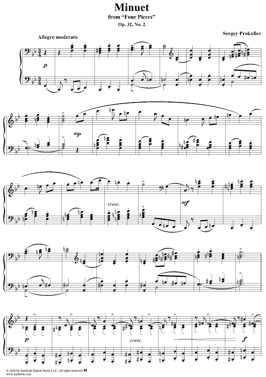 "Minuet, Op. 32, No. 2" Sheet Music by Sergei Prokofiev