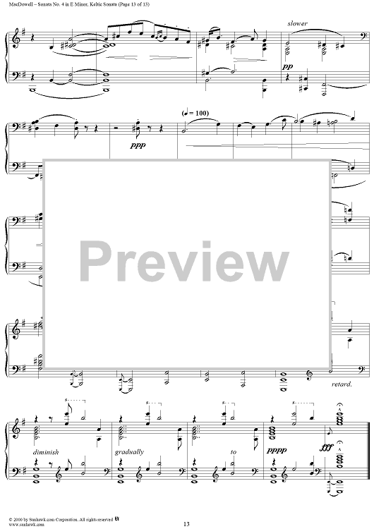 Digital Sheet Music for Sonata No. 4 ("Keltic"), Op. 59 by Edward MacDowell scored for Piano Solo; id:262681