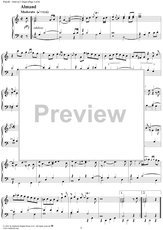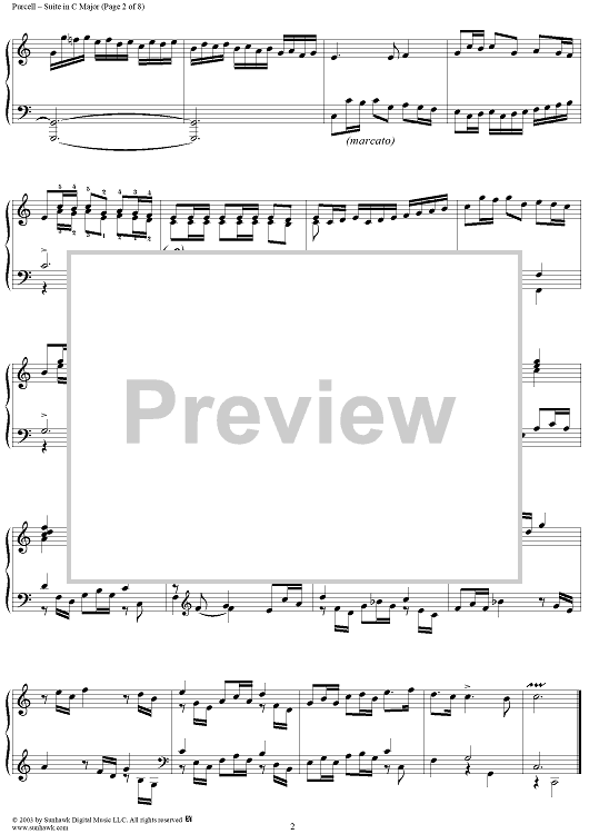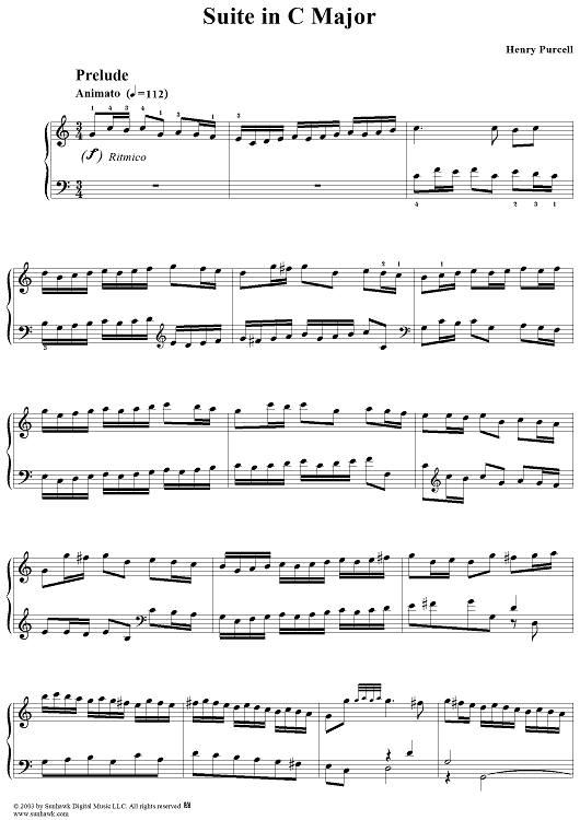 Digital Sheet Music for Suite No. 5 in C Major by Henry Purcell scored for Piano Solo; id:294372