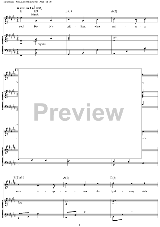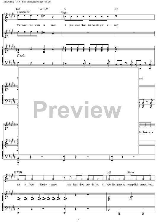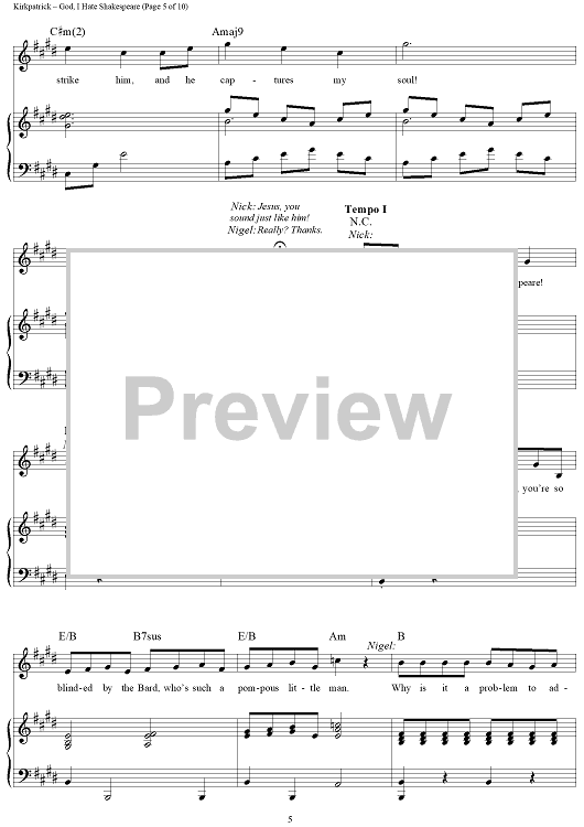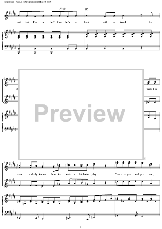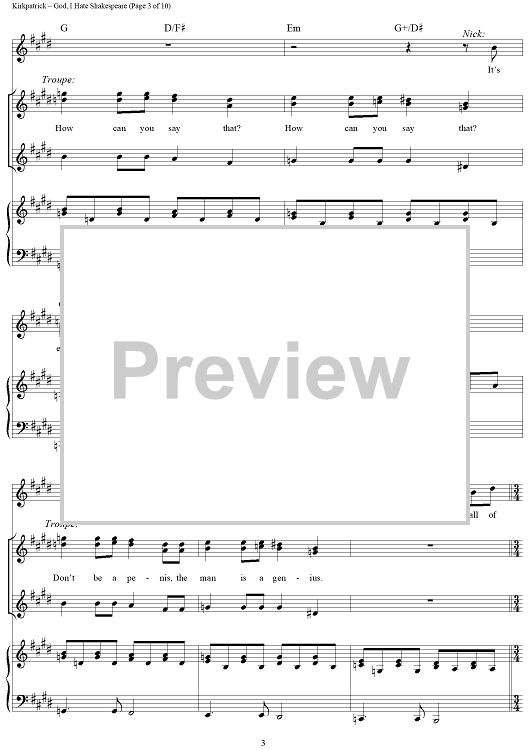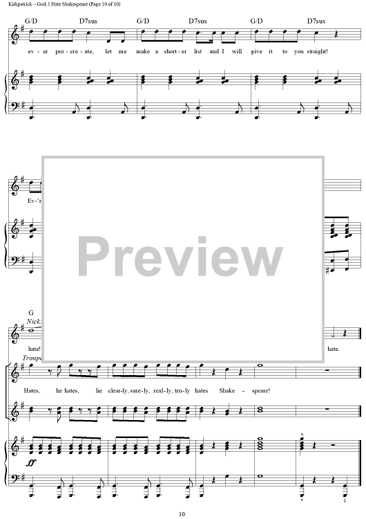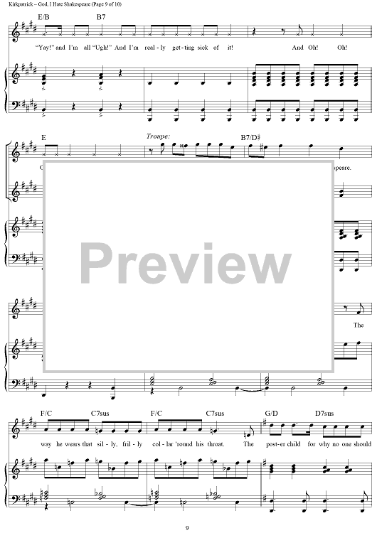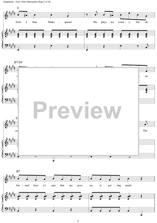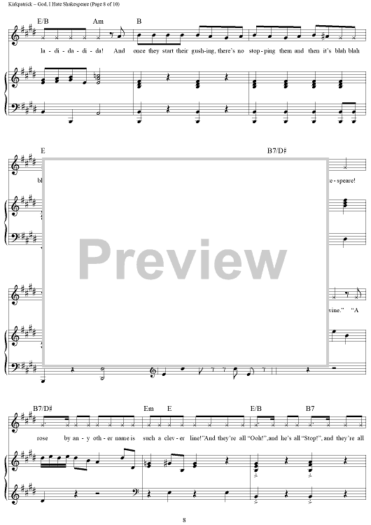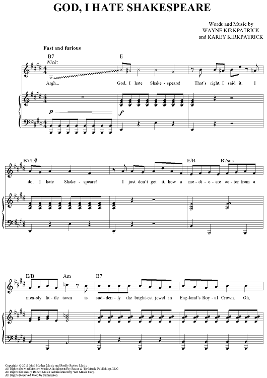 Digital Sheet Music for God, I Hate Shakespeare by Wayne Kirkpatrick, Karey Kirkpatrick scored for Piano/Vocal/Chords; id:457931