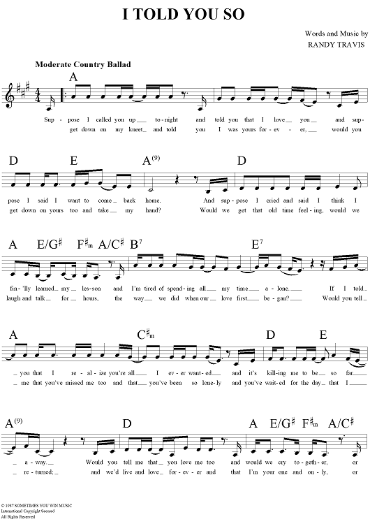 Digital Sheet Music for I Told You So by Randy Travis scored for Lead Sheet; id:261296