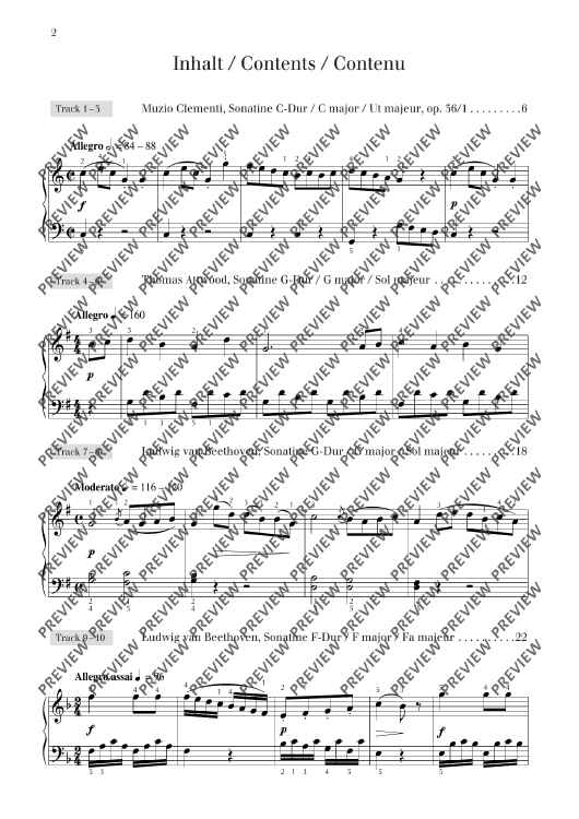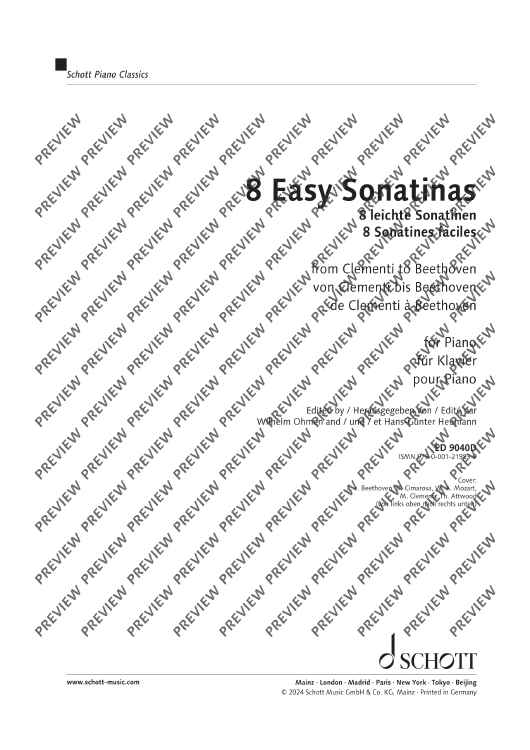 The most beautiful classical sonatinas by Muzio Clementi, Thomas Attwood, Ludwig van Beethoven, Daniel Gottlob Türk, Christian Louis Heinrich Köhler, Domenico Cimarosa, and Wolfgang Amadeus Mozart. For lessons and for concert lovers, edited by Wilhelm Ohmen und Hans-Günter Heumann.