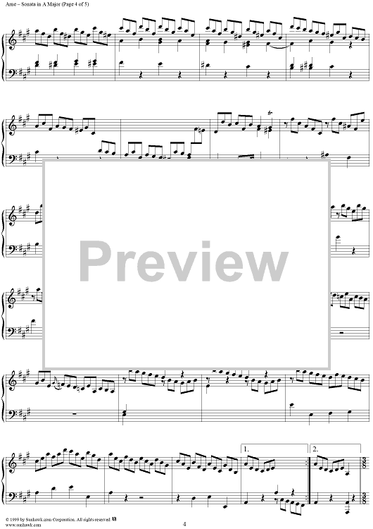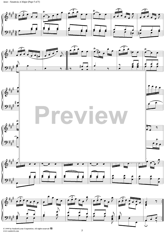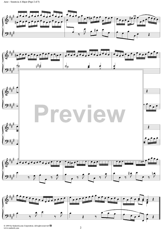 Digital Sheet Music for 8 Sonatas or Lessons, No. 7 - Sonata in A major by Thomas Arne scored for Piano Solo; id:118333