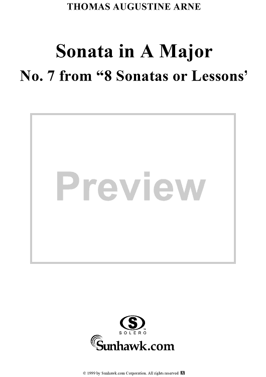 "8 Sonatas or Lessons, No. 7 - Sonata in A major" Sheet Music by Thomas Augustine Arne