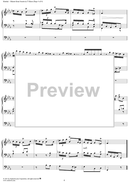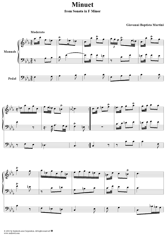 Digital Sheet Music for Minuet, from "Sonata in F Minor" by Giovanni Battista Martini scored for Organ Solo; id:251464