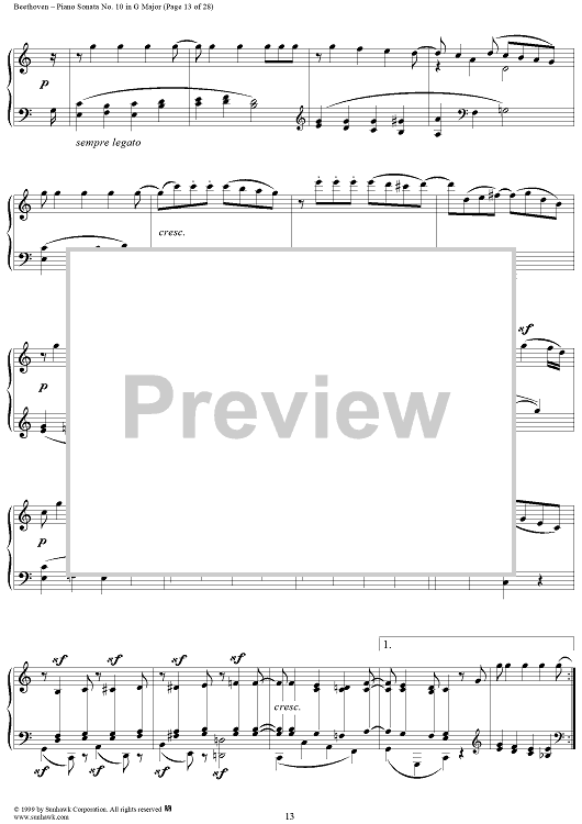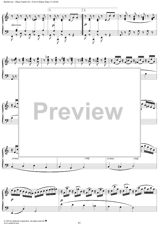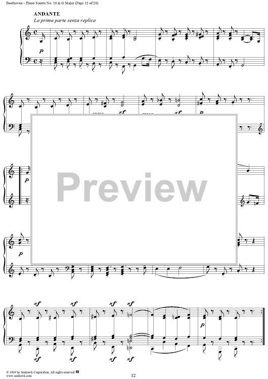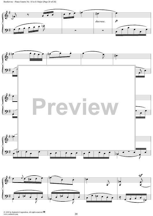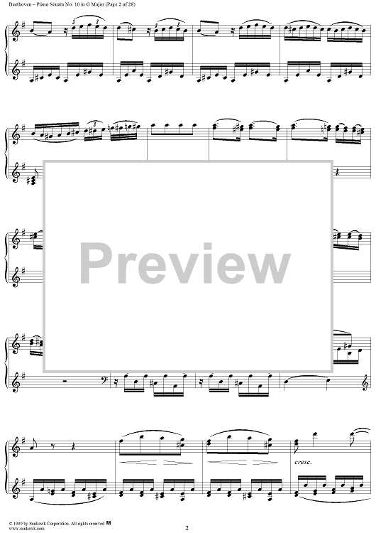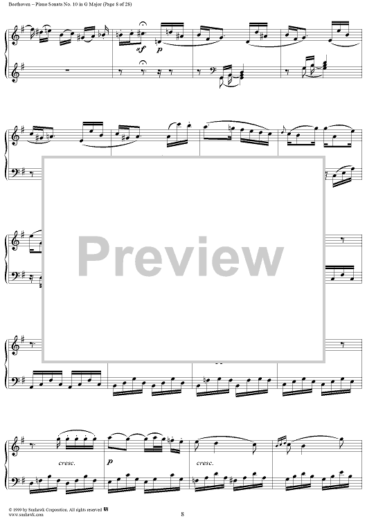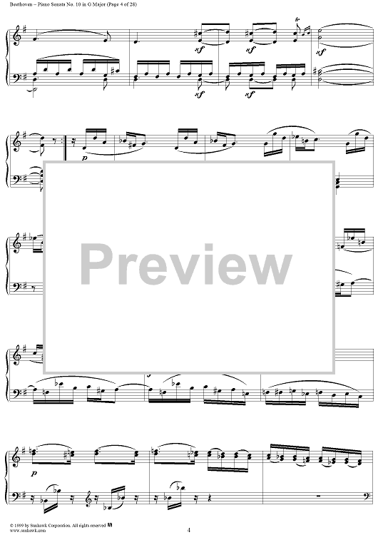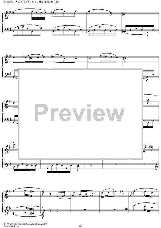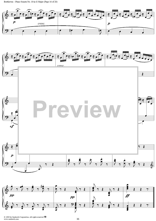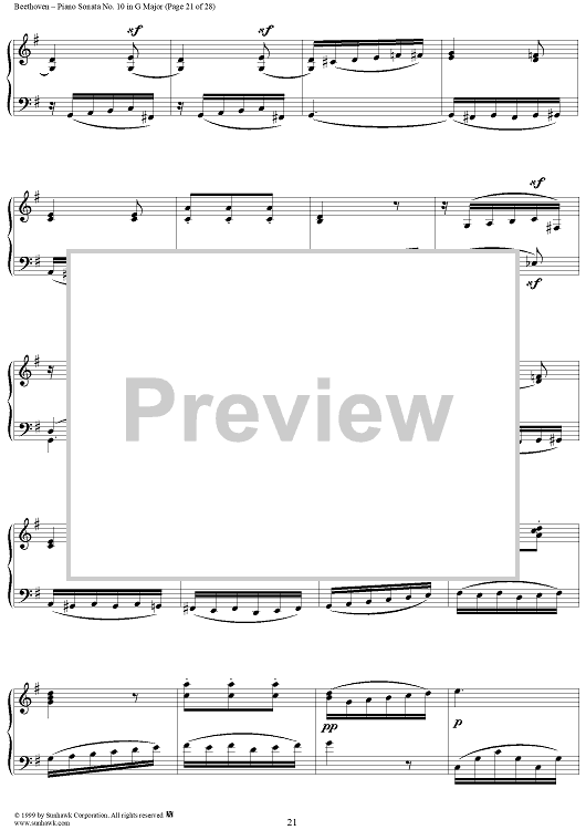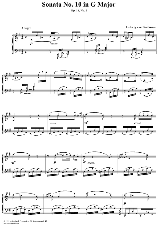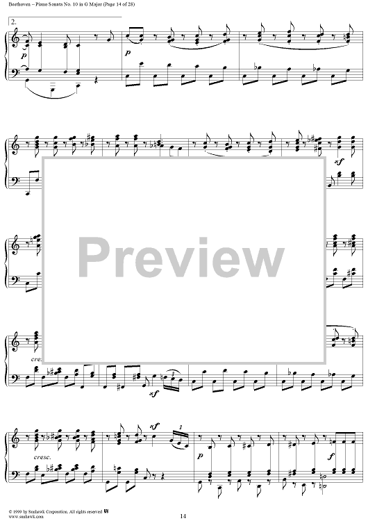 Digital Sheet Music for Piano Sonata No. 10 in G Major, Op. 14, No. 2 by Ludwig van Beethoven scored for Piano Solo; id:117993
