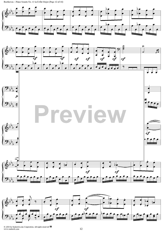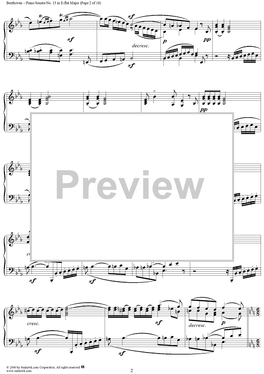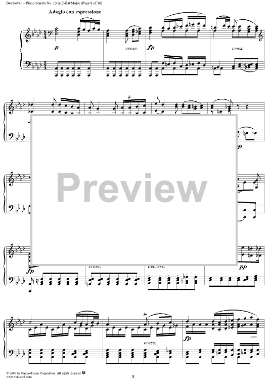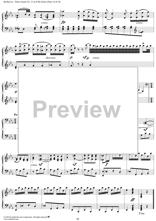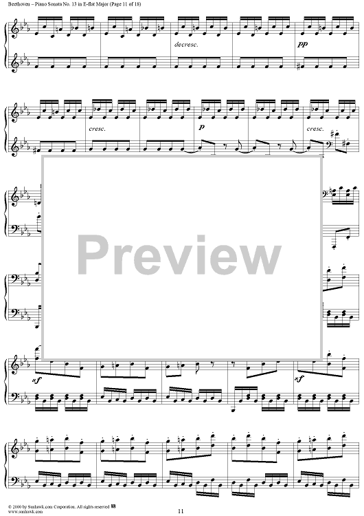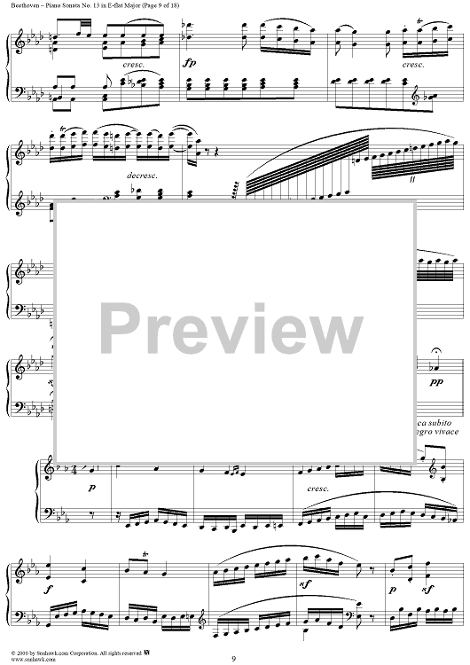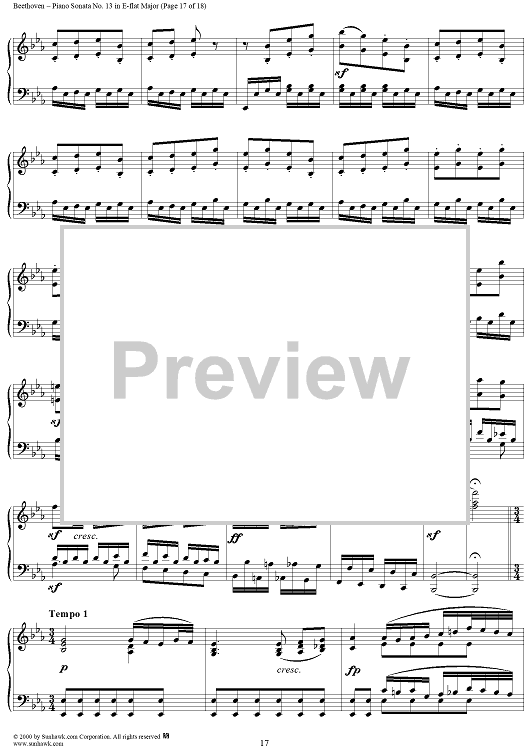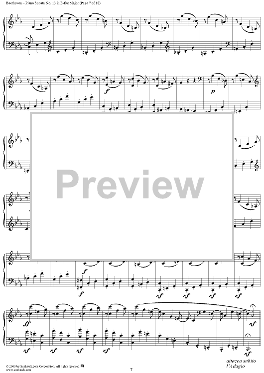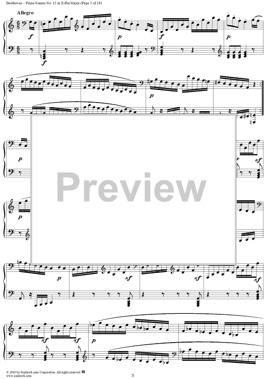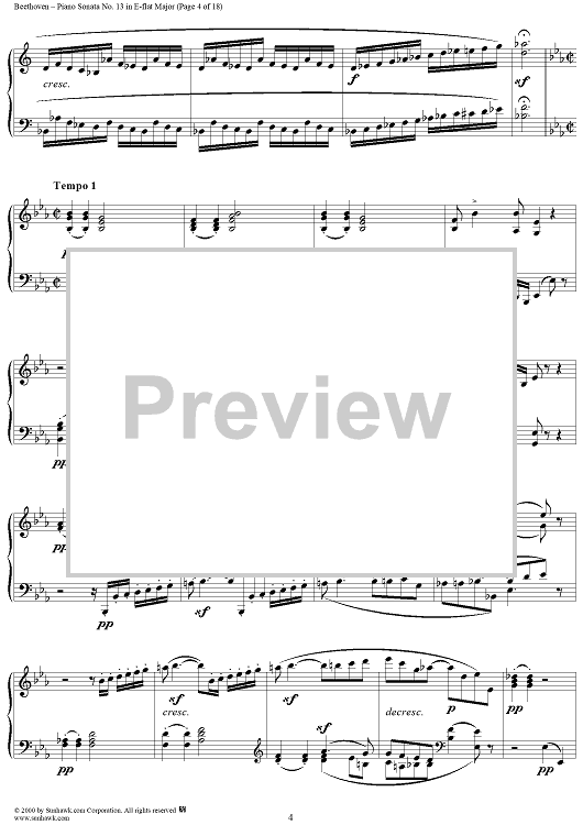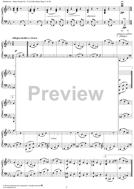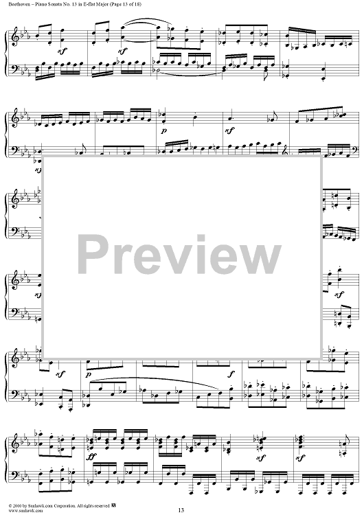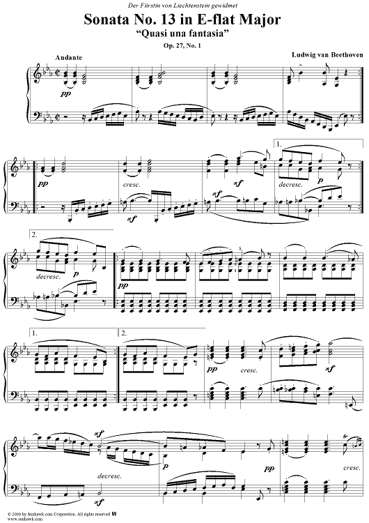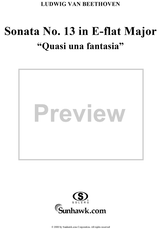 Digital Sheet Music for Piano Sonata No. 13 in E-flat Major, Op. 27, No. 1, "Quasi una fantasia" by Ludwig van Beethoven scored for Piano Solo; id:275476