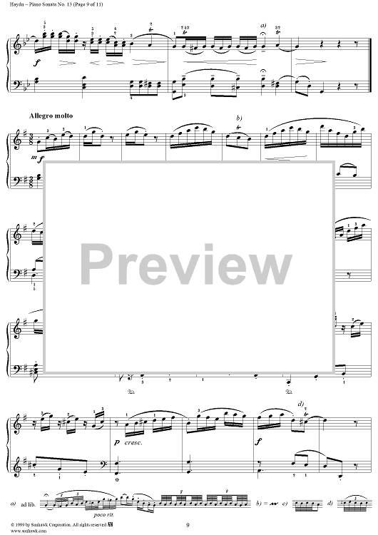 Digital Sheet Music for Piano Sonata no. 13 in G Major by Franz Joseph Haydn scored for Piano Solo; id:118121