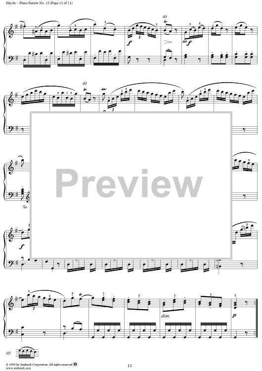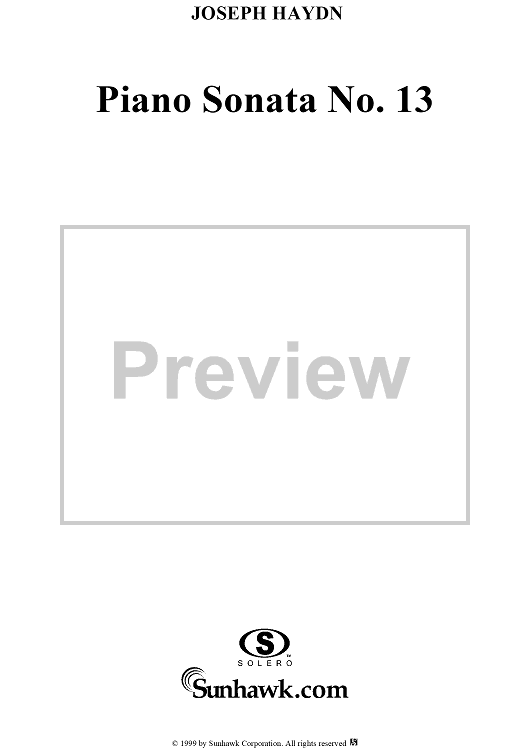 "Piano Sonata no. 13 in G Major" Sheet Music by Franz Joseph Haydn