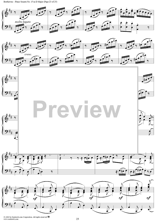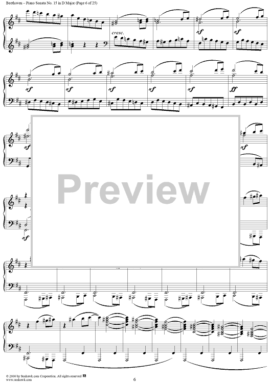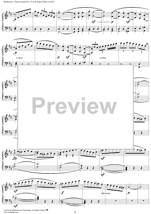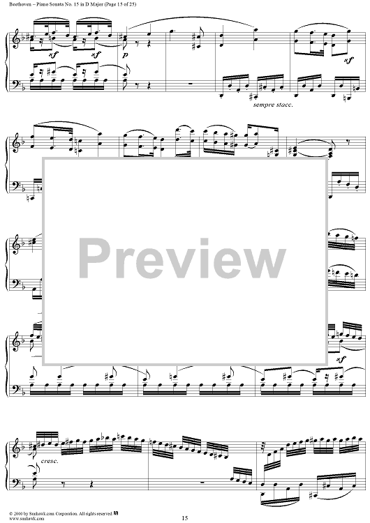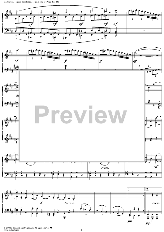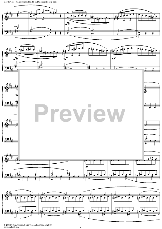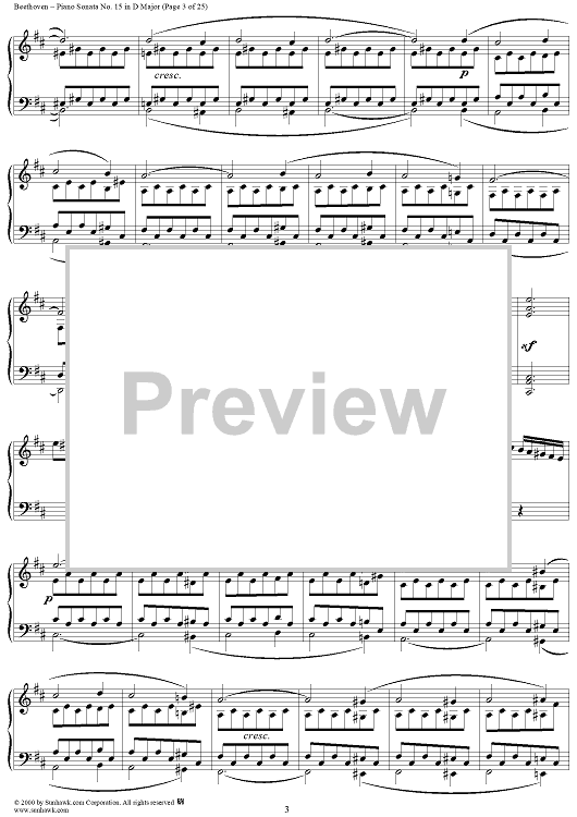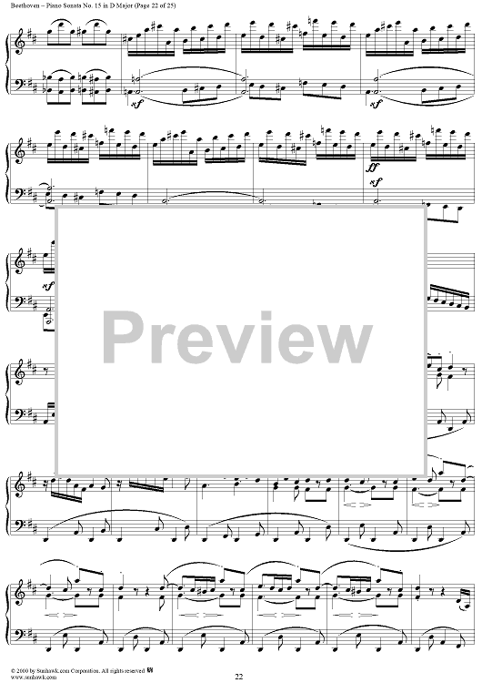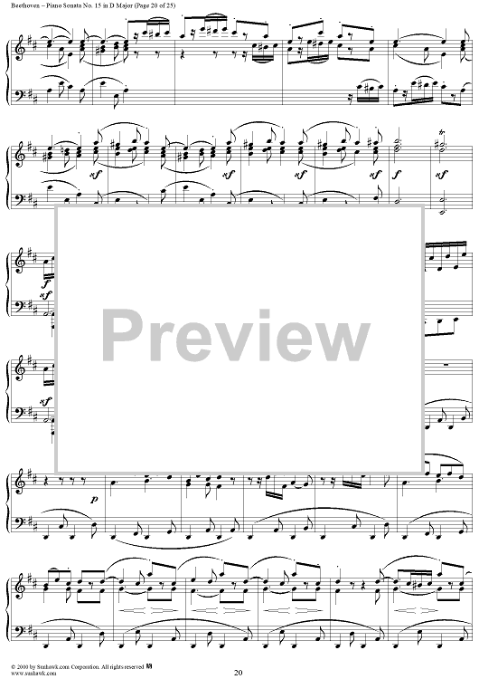 Digital Sheet Music for Piano Sonata No. 15 in D Major, Op. 28 by Ludwig van Beethoven scored for Piano Solo; id:275482