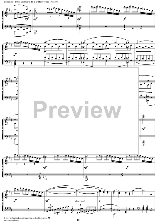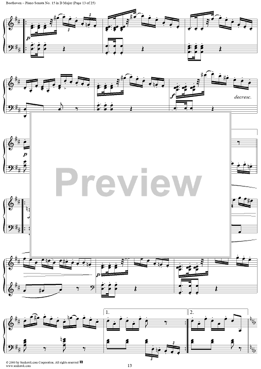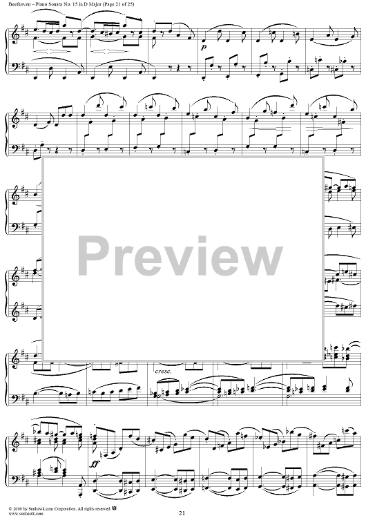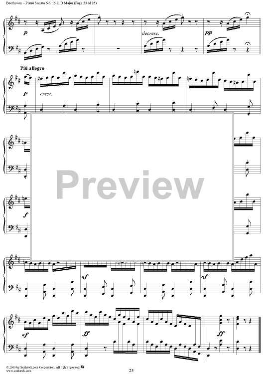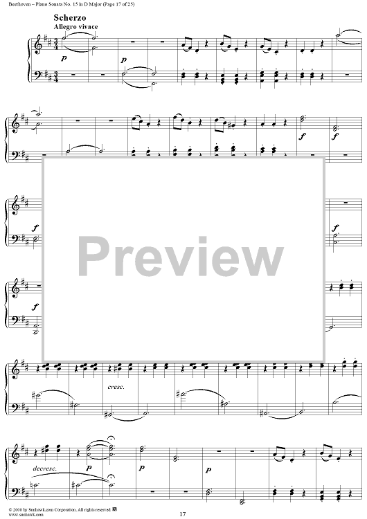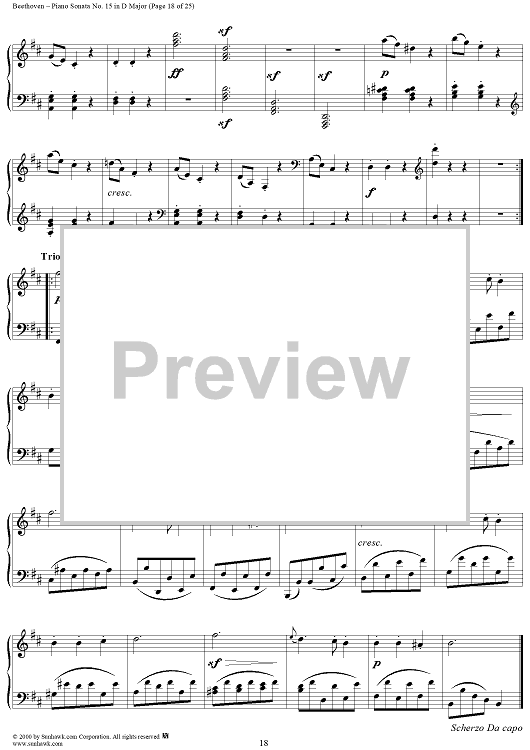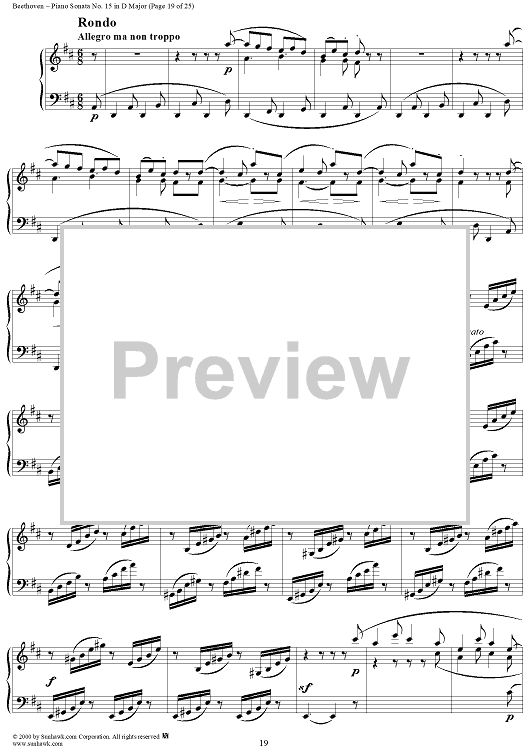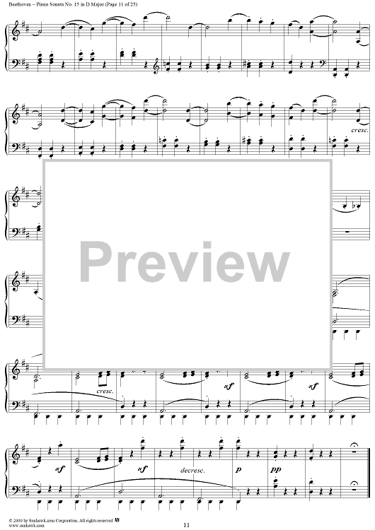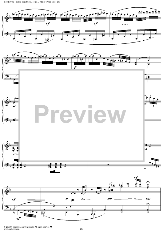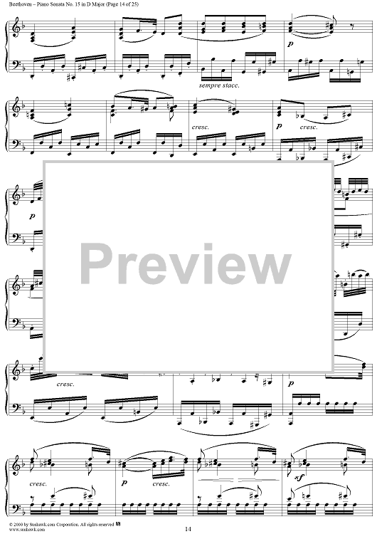 Digital Sheet Music for Piano Sonata No. 15 in D Major, Op. 28 by Ludwig van Beethoven scored for Piano Solo; id:275482
