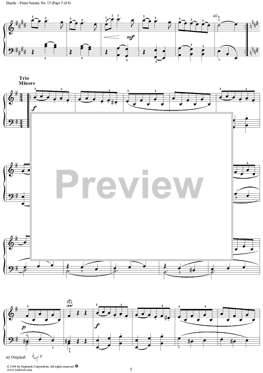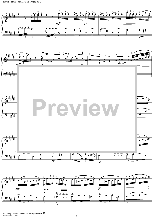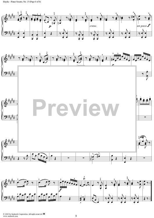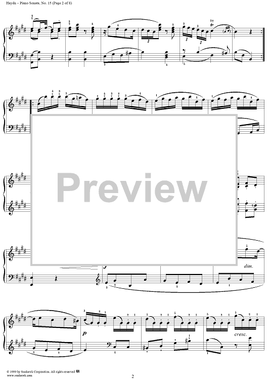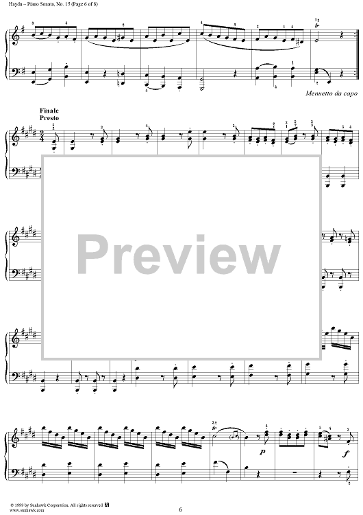 Digital Sheet Music for Piano Sonata no. 15 in E Major by Franz Joseph Haydn scored for Piano Solo; id:118122