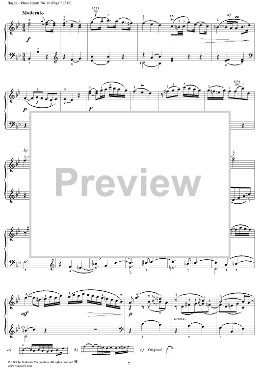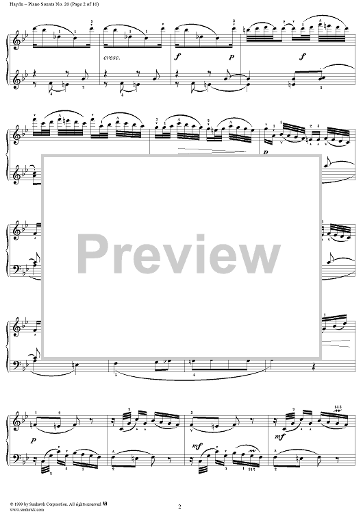 Digital Sheet Music for Piano Sonata no. 20 in B-flat Major by Franz Joseph Haydn scored for Piano Solo; id:118118