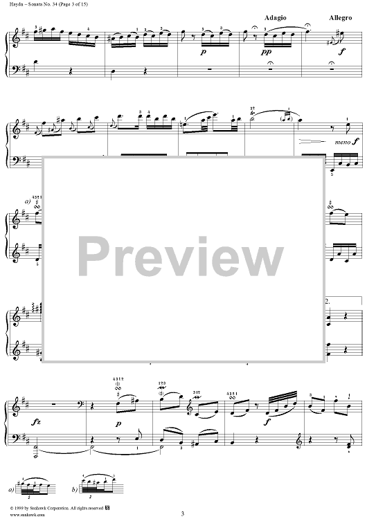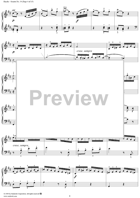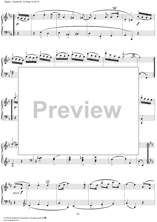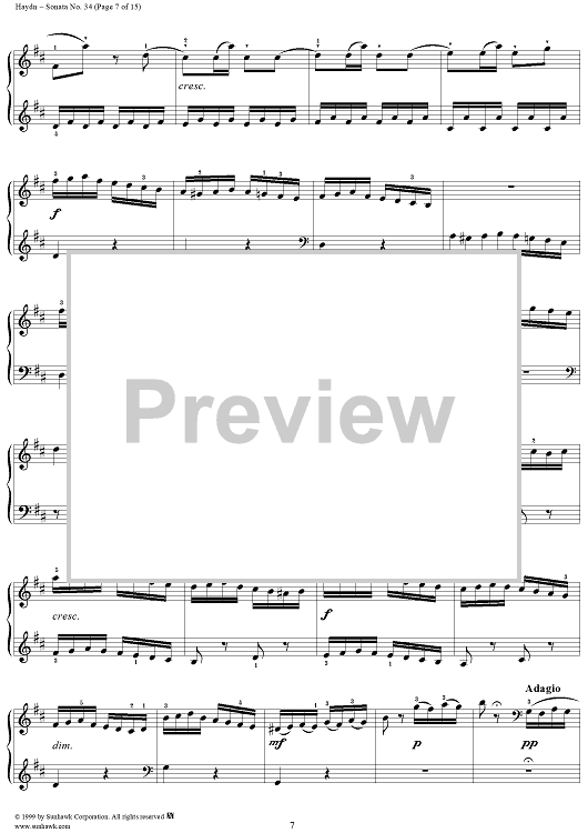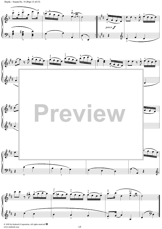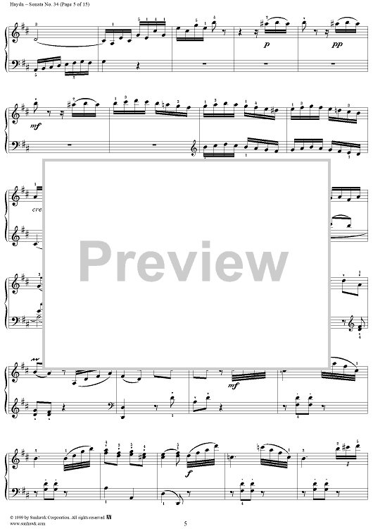 Digital Sheet Music for Piano Sonata no. 34 in D Major by Franz Joseph Haydn scored for Piano Solo; id:118137