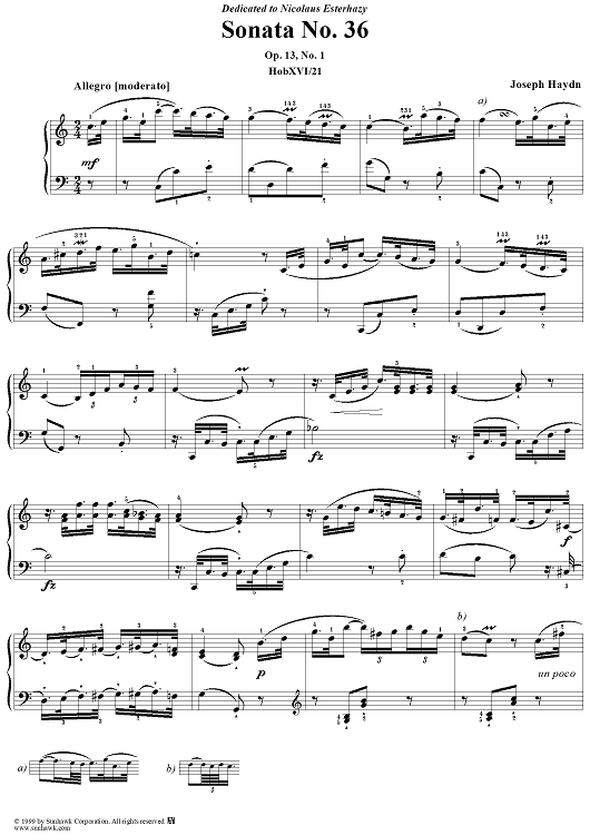 Digital Sheet Music for Piano Sonata no. 36 in C Major, op. 13, no. 1 by Franz Joseph Haydn scored for Piano Solo; id:118142