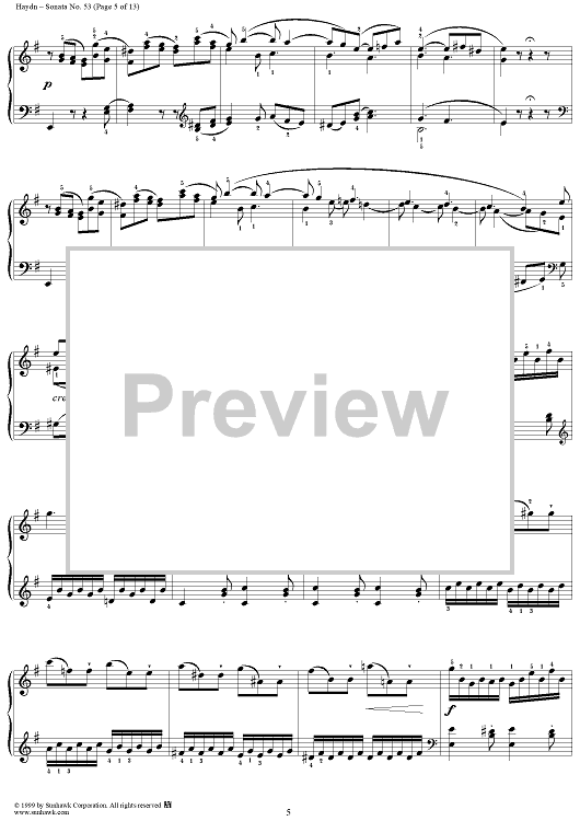 Digital Sheet Music for Piano Sonata no. 53 in E Minor, op. 30, no. 4 by Franz Joseph Haydn scored for Piano Solo; id:118152