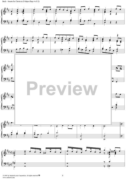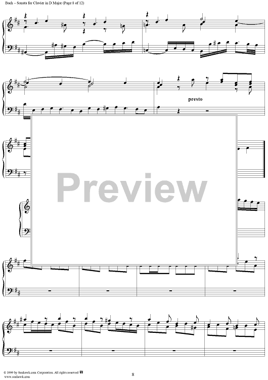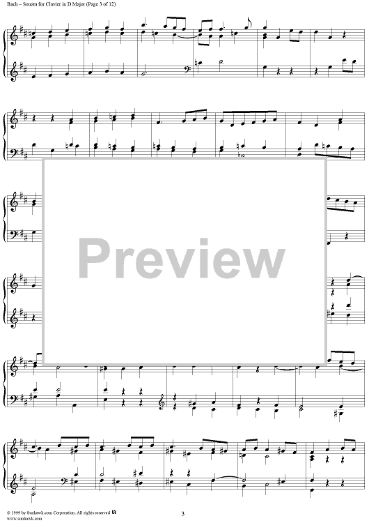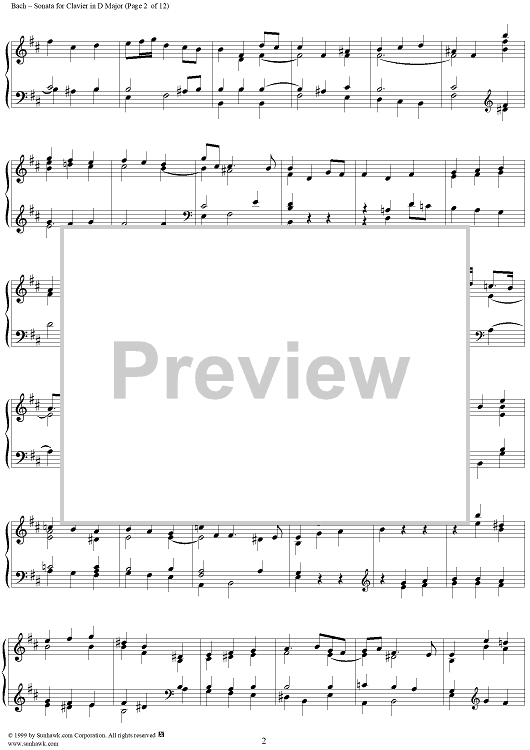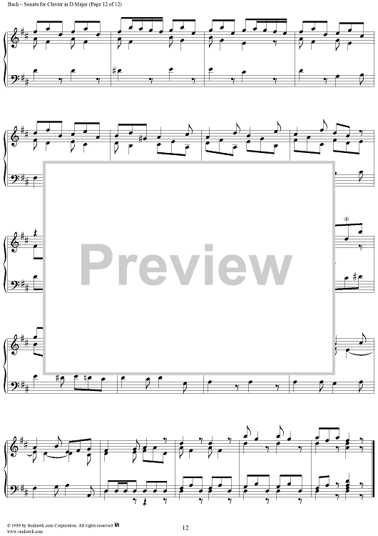 Digital Sheet Music for Sonata for Clavier in D Major, BWV963 by Johann Sebastian Bach scored for Piano Solo; id:118342
