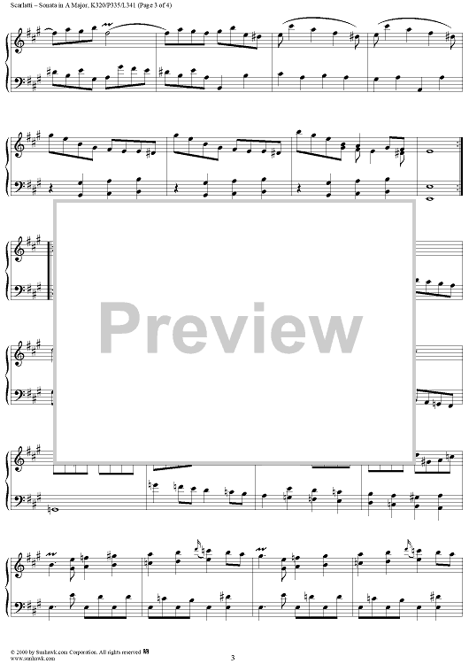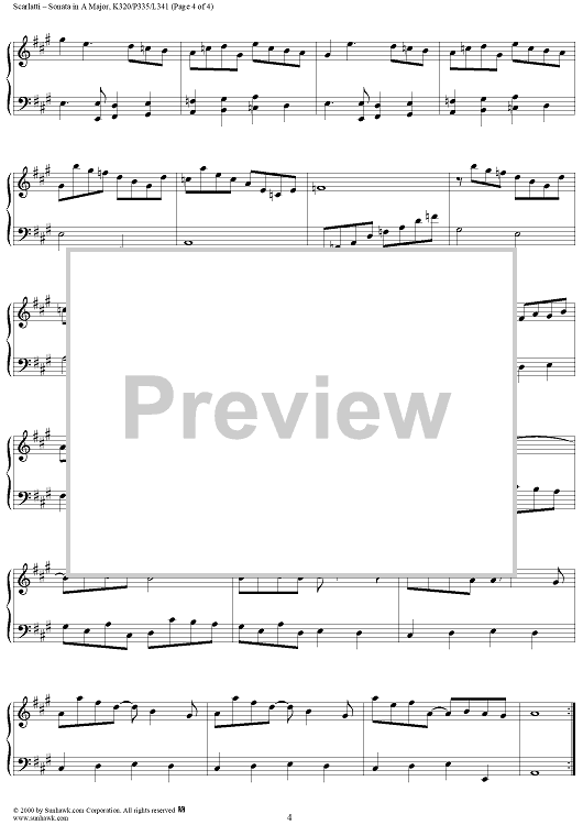 Digital Sheet Music for Sonata in A major, K. 320 by Domenico Scarlatti scored for Piano Solo; id:204155