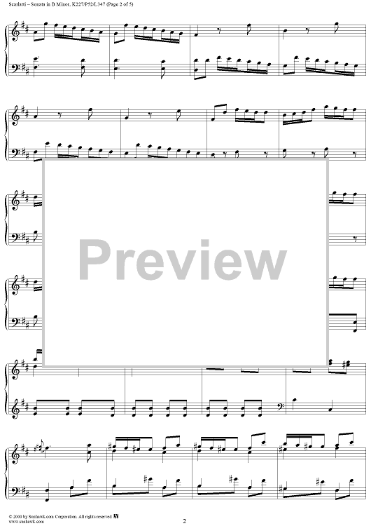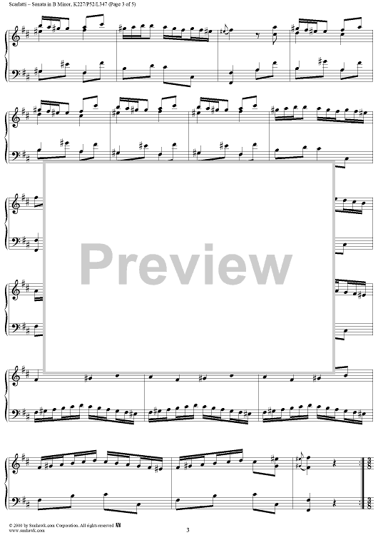 Digital Sheet Music for Sonata in B minor, K227 by Domenico Scarlatti scored for Piano Solo; id:203915