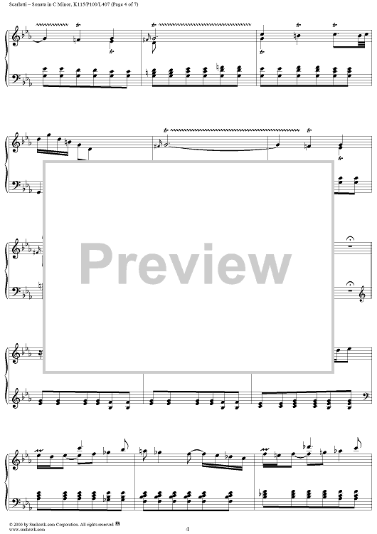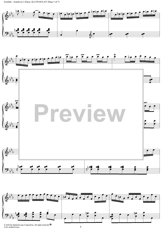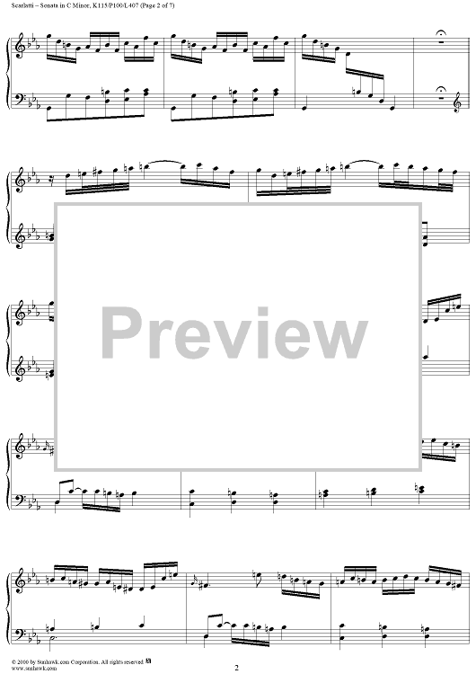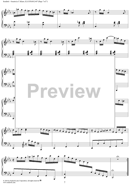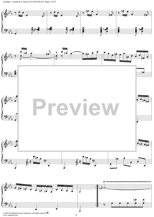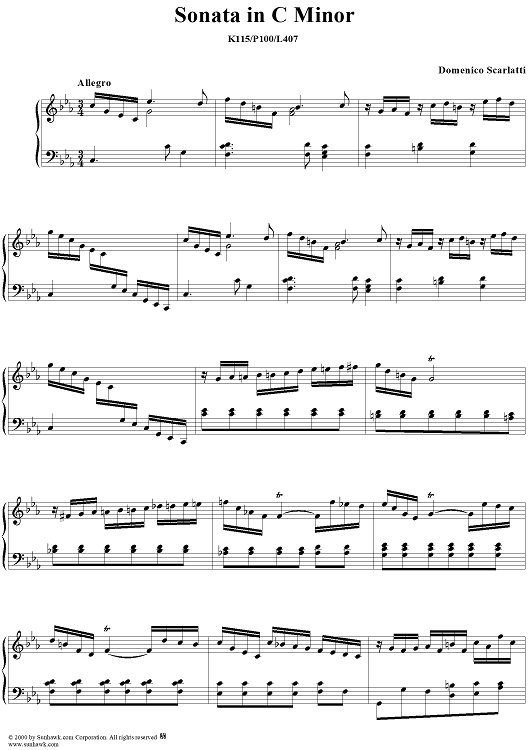 Digital Sheet Music for Sonata in C minor, K115 by Domenico Scarlatti scored for Piano Solo; id:203455